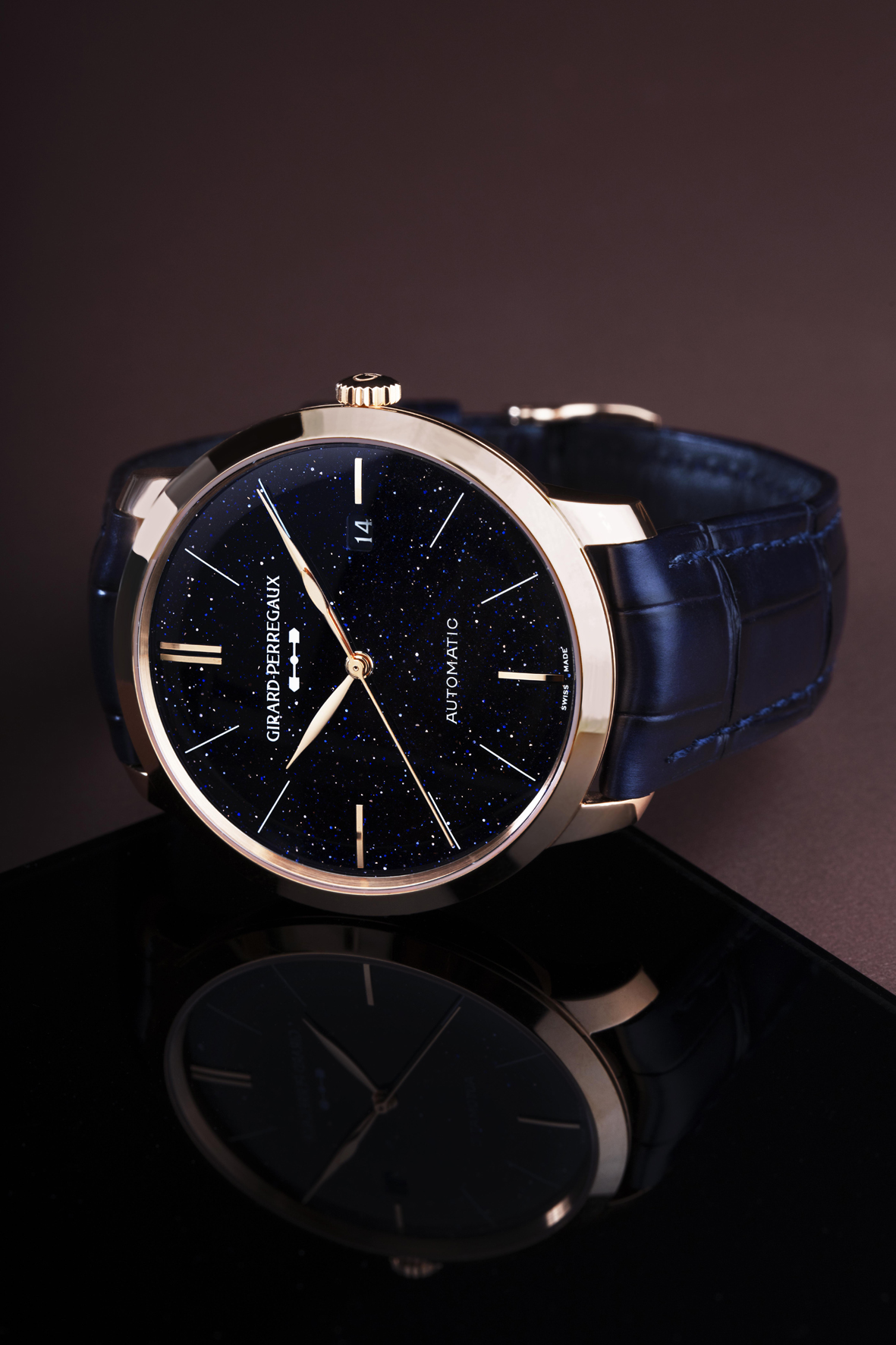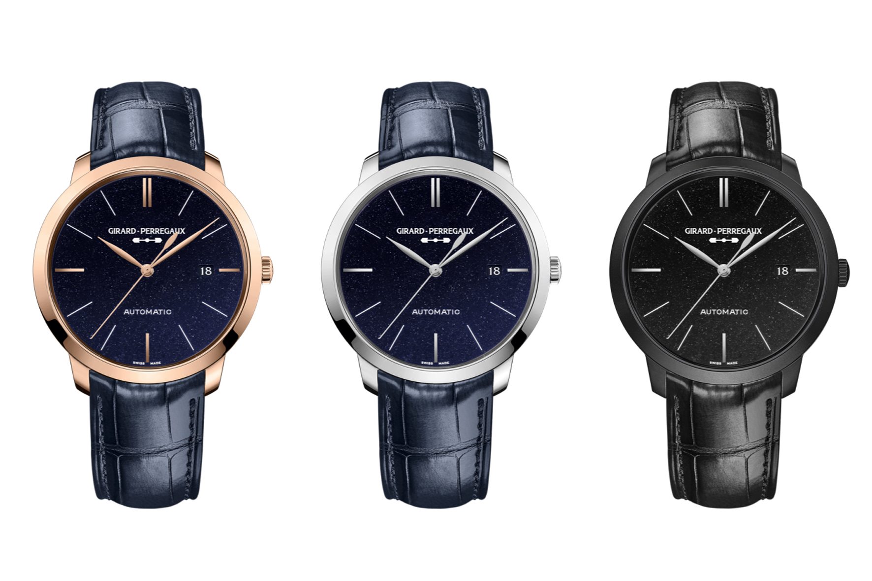 A series of three watches featuring an ultra-thin case “9.40mm X 40mm”, available in steel, black DLC steel and rose gold, combined with a magnificent blue or black aventurine dial that evokes the starry sky.