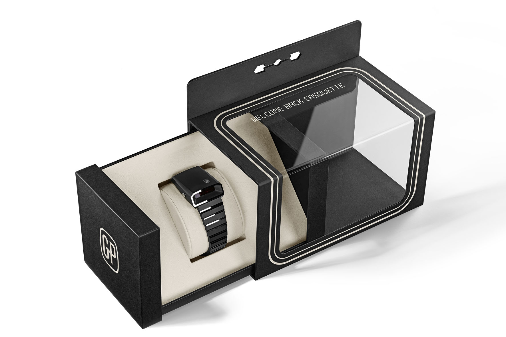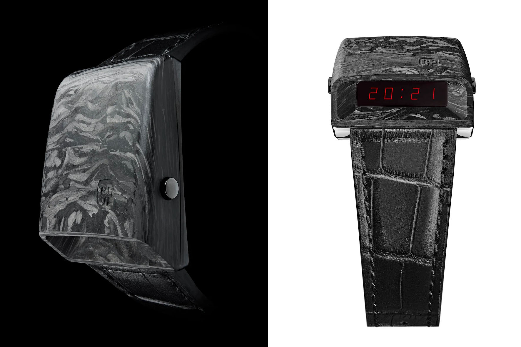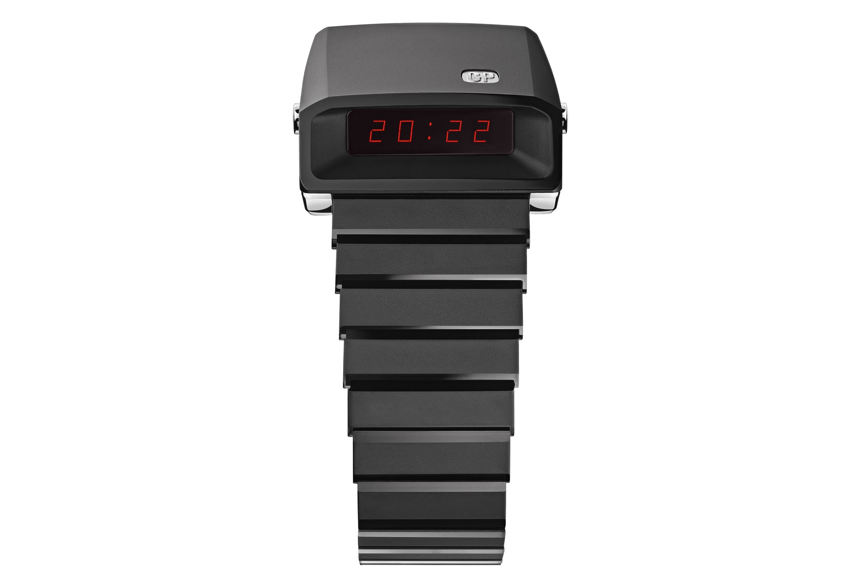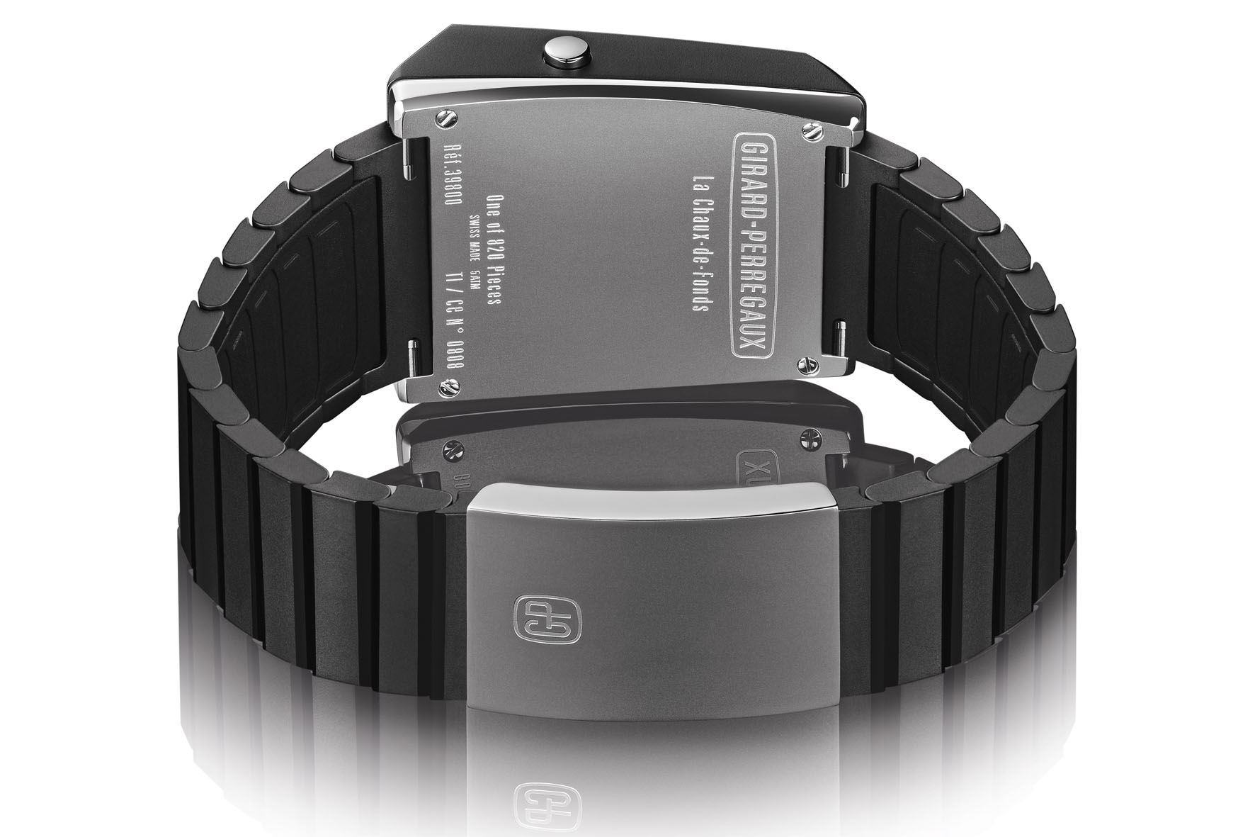 The original displayed the hours, minutes, seconds, day and date with its quartz movement delivering a high degree of precision. Moreover, while many rival firms merely swapped a conventional display for a circular panel featuring a series of LEDs, Girard-Perregaux looked at the Casquette’s design with a fresh set of eyes. The tubular LED display was not only functional, its appearance sidestepped convention, contributing to its avant-garde styling. Indeed, at the time, the watch was likened to a 70s muscle car with its LEDs resembling taillights.