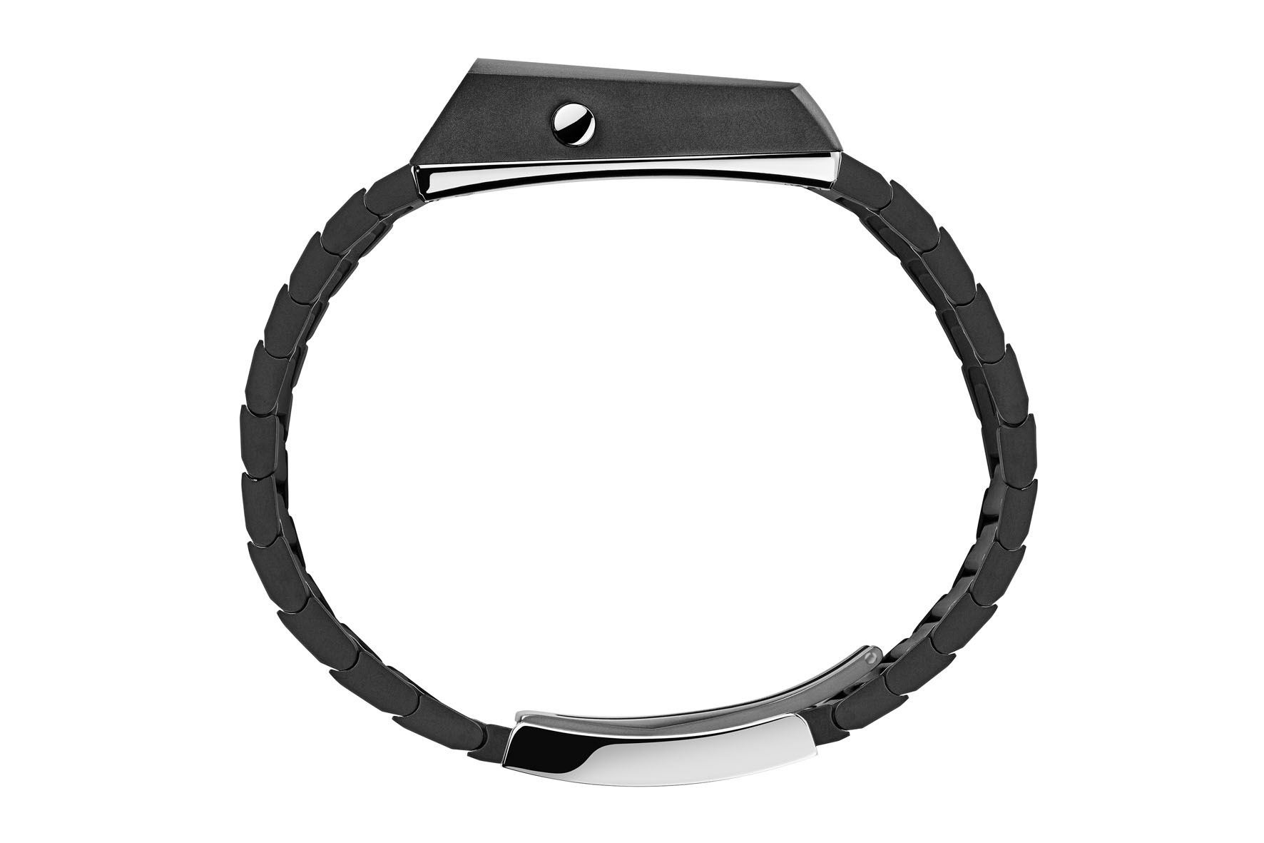 The Casquette allows the wearer to view the time on demand, preserving battery life. In fact, assuming the pushers are pressed on average 20 times per day, the battery should last for 2 years. The watch is supplied on a ceramic bracelet with a rubber interior which proves more flexible and comfortable than its counterpart fitted to the original Casquette. The bracelet it now paired with a folding titanium buckle.
