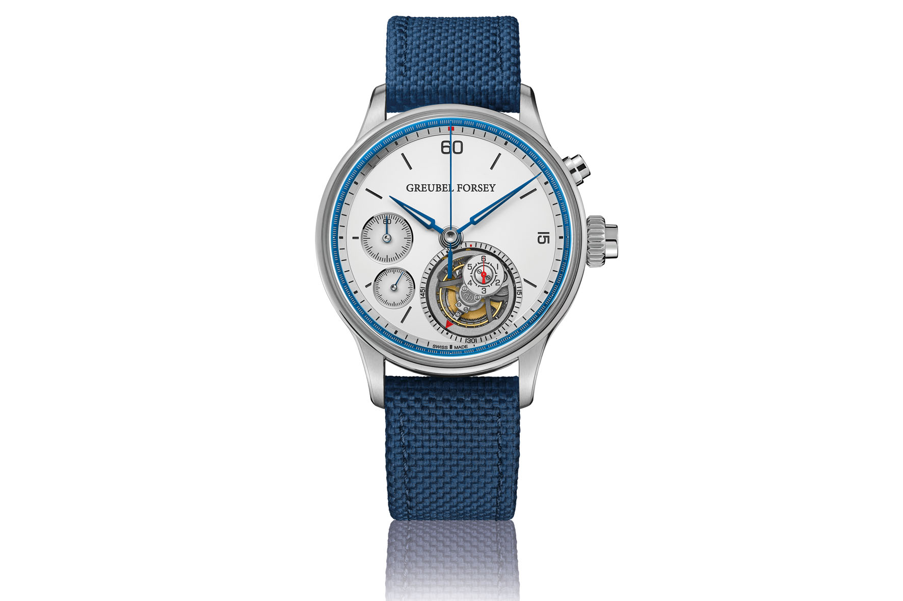 The Nano Foudroyante mechanism is embedded within Greubel Forsey’s first flying tourbillon, creating a visual and technical centerpiece. The foudroyante’s dial remains permanently oriented to twelve o’clock, even as the tourbillon rotates – ensuring optimal readability.