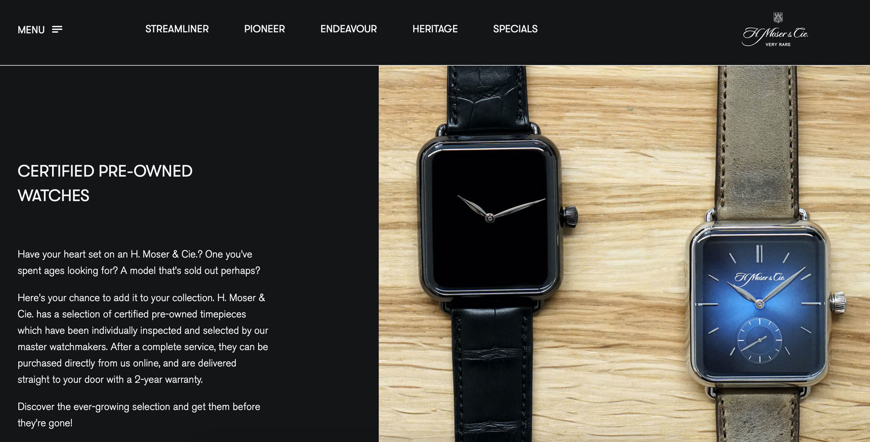 We do not buy back watches for our CPO platform. We operate more like a kind of depot, putting our customers in touch to facilitate a sale. We have launched our online CPO platform in March 2020. Our aim was to strengthen our relationship with our clients and to meet their expectations in a personalized manner. Our creations are by nature very rare. Due to our exclusive production (about 1500 pieces per year), we can only offer very limited series, with the result that demand far exceeds supply. Through the platform, we want to make it easy for enthusiasts and friends of H. Moser & Cie. to get in touch with us in order to acquire the watch of their dreams, unavailable and sold out on the market, from among a selection of exclusive pieces that have already been worn, all of which have been tested beforehand, restored to perfect condition and provided with a certificate of authenticity and a two-year guarantee. It should be noted that only the series that are no longer part of the current catalogue are for sale.
