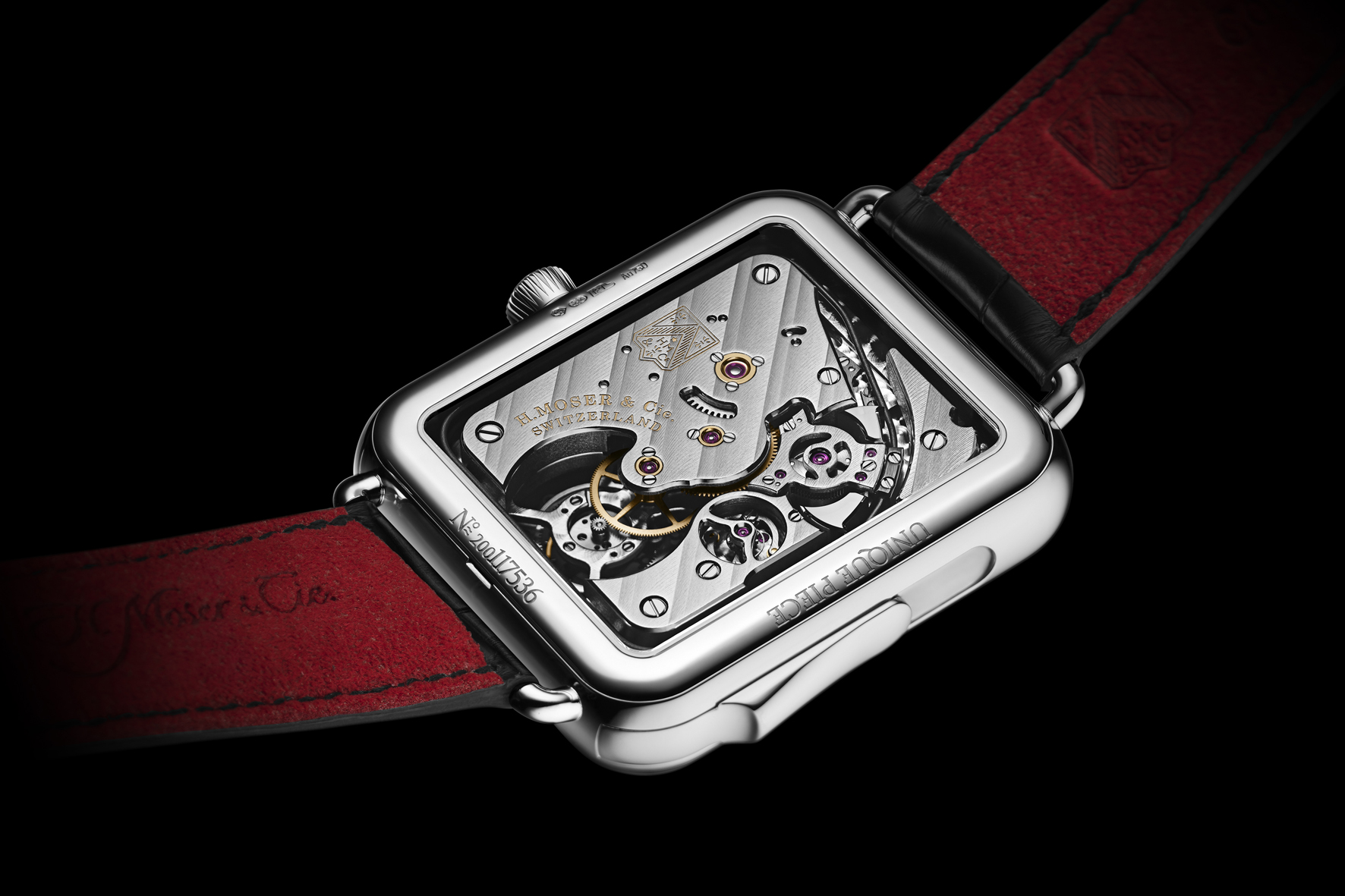 Since 2005, H. Moser & Cie. have been designing, developing and producing their 13th movement, the C 901 hand-wound calibre. In their challenging quest to combine a perfect harmony with a strong sound, H. Moser & Cie. called upon the expertise of those in the field, specifically MHC Manufactures Hautes Complications SA. This movement is a true piece of jewellery that not only combines a minute repeater and a tourbillon, a rare feat in watchmaking, but goes further and adds to its complexity with the addition of a shaped calibre. Nestled at the heart of the Swiss Alp Watch’s rectangular case with its rounded corners, the C 901 movement is equipped with two gongs that required extreme dexterity to join them; making it very rare indeed.