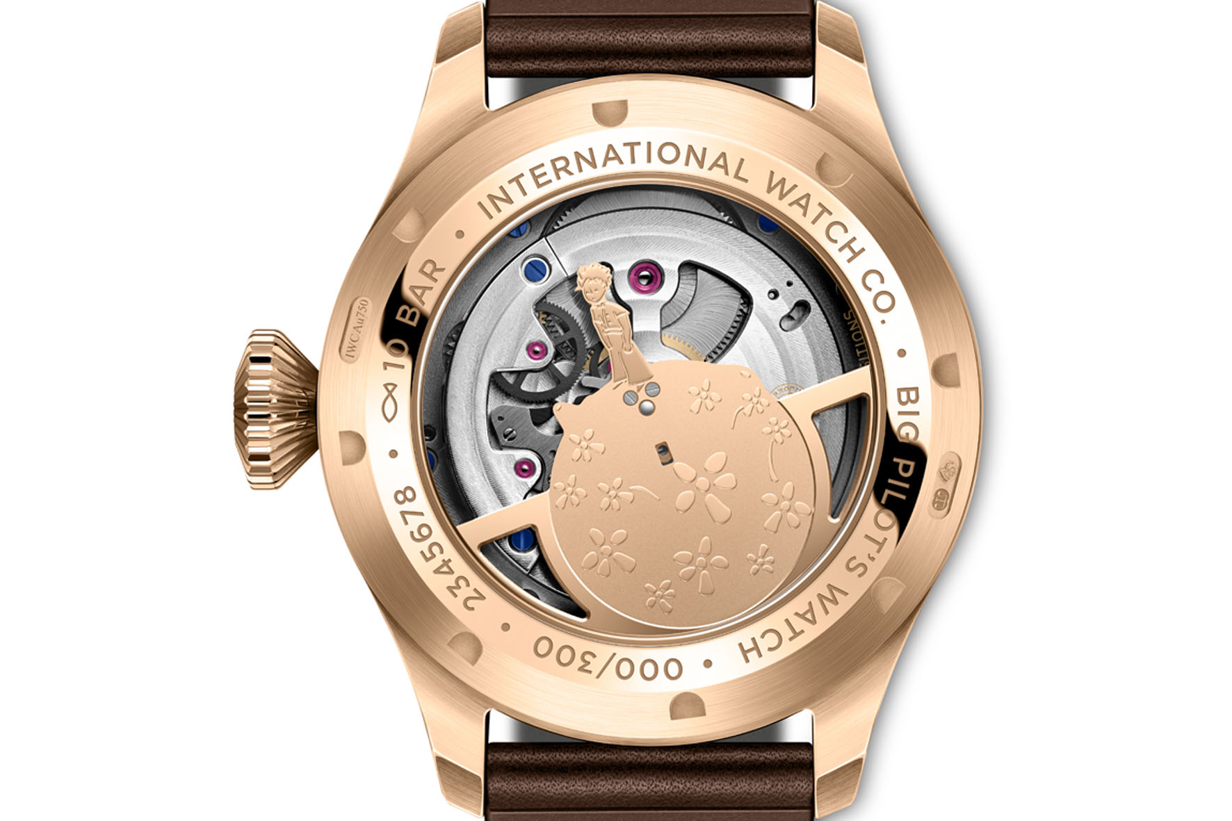 What catches the eye, however, is not only the tourbillon on the dial. There is also the back. In fact, the transparent back reveals the oscillating weight to the eyes, a small work of art in solid gold in the shape of the Little Prince standing on his own planet. A detail that was already present on the 2016 limited edition of the Big Pilot’s Watch Annual Calendar.