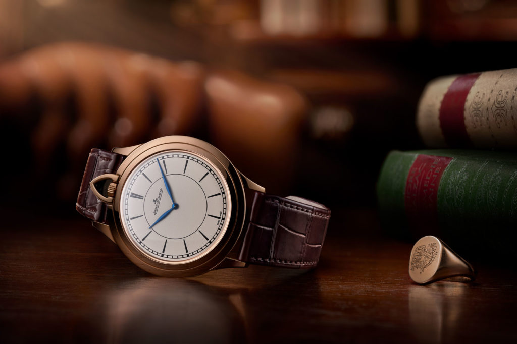 The aesthetic roots of the new watch are unmistakably those of Jaeger-LeCoultre’s traditional pocket watches: the very broad bezel slopes from the sapphire crystal to the edge of the case, creating a fine profile reminiscent of a knife blade and the winding crown, protected by its triangular bow, is placed at 12 o’clock.