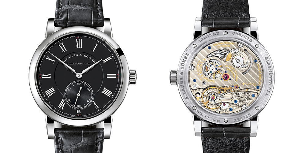 23 September 2016With a limited 218-watch edition of the RICHARD LANGE “Pour le Mérite”, A. Lange & Söhne revives the concept of the uncompromisingly precise timekeeping instrument. The new version in white gold with a black dial had its debut at the company’s inter- national dealer convention in Dresden on 22 September 2016. Its fusée-and-chain transmission ensures constant torque and superb rate accuracy.