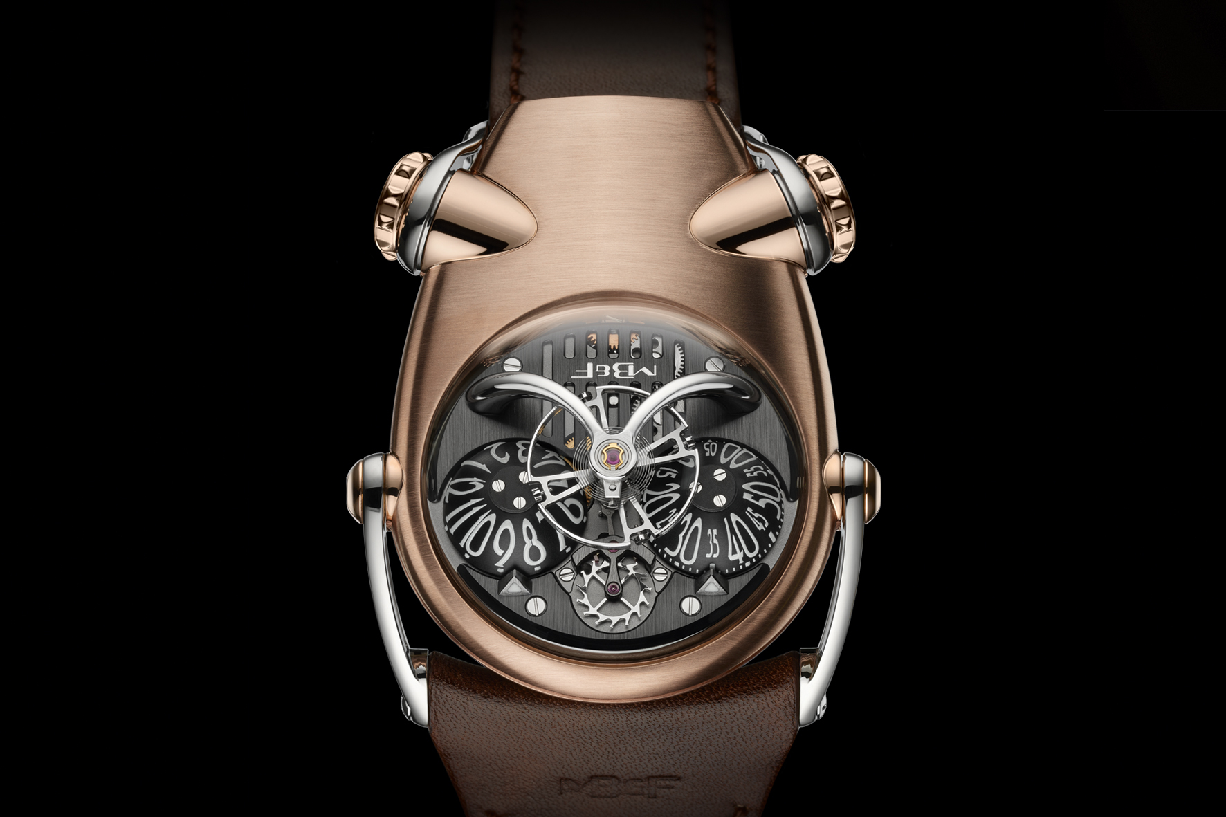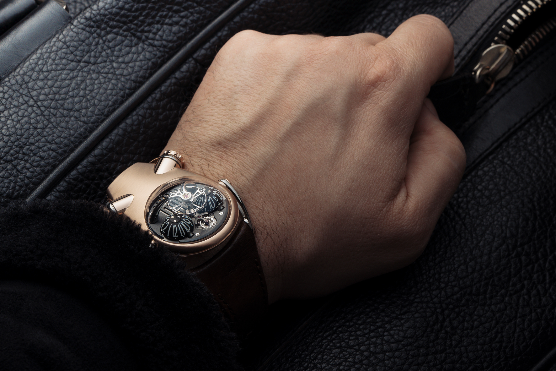 The design came to Maximilian Büsser while he was travelling in Japan; Horological Machine N°10 ‘Bulldog’ bounded up in his mind’s eye just as a loyal pup might greet a returning master.