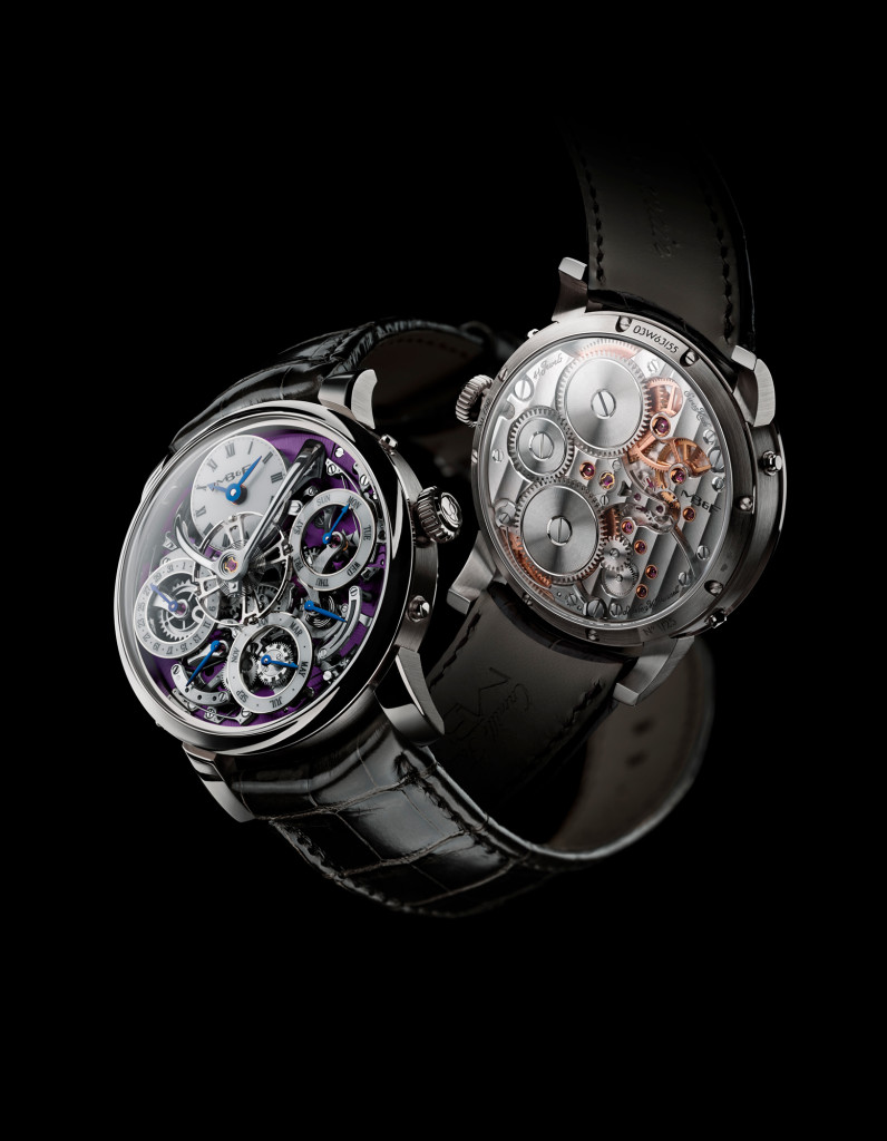 Legacy Machine Perpetual is available in three limited editions of 25 pieces each in platinum 950 (blue face), 18k red gold (grey face) and 18k white gold (purple face); and in a non-limited edition in 18k white gold with grey face, both version costs 148’000 CHF + TAX.