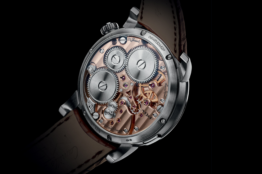 Antique watches featuring a frosted finish used acid baths to achieve this effect, but modern methods of replicating a frosted finish involves manually burnishing a metal surface with a wire brush. LM Split Escapement is a celebration of this technique, which is executed completely by hand for all 72 pieces of the launch editions.