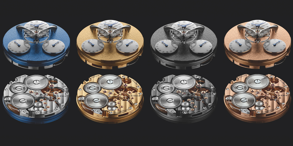 - Blue frosted finish paired with rhodium-plated movement for the most classically elegant version.
