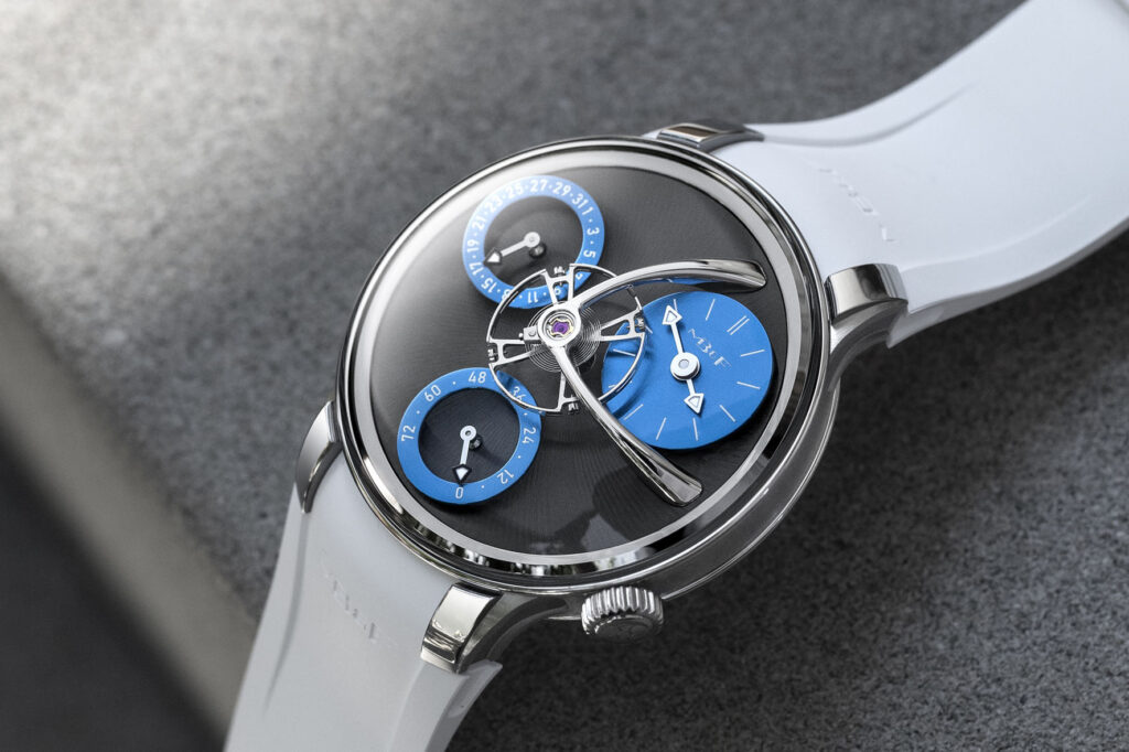 The Beverly Hills MB&F LAB is managed by the renowned American watch retailer Westime, who has not only been a partner of the brand since the very beginning, but is also one of the first to open an MB&F LAB. This new edition of 25 pieces comes in Westime’s corporate colours of blue and black with a striking black base plate and metallic blue dial and open counters. It will be the only MB&F LAB edition released this year. (Price € 80,000)