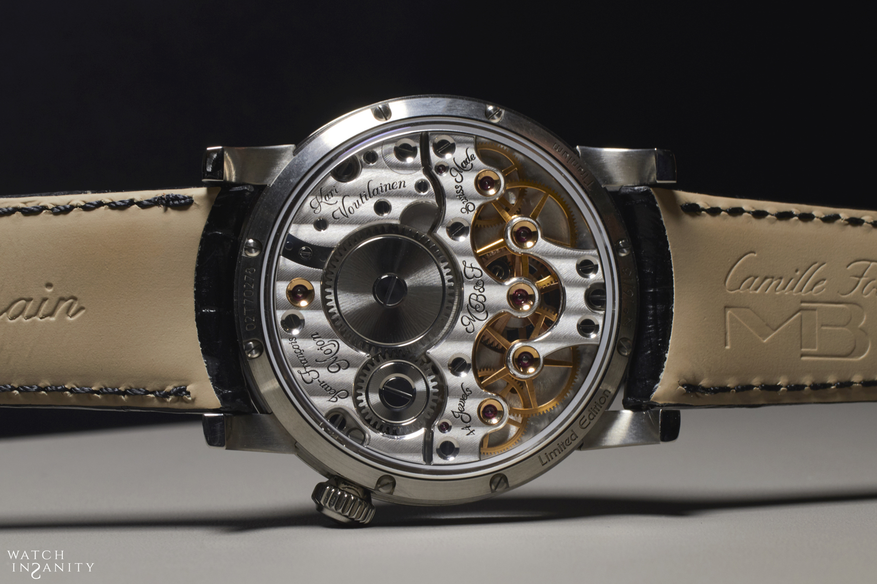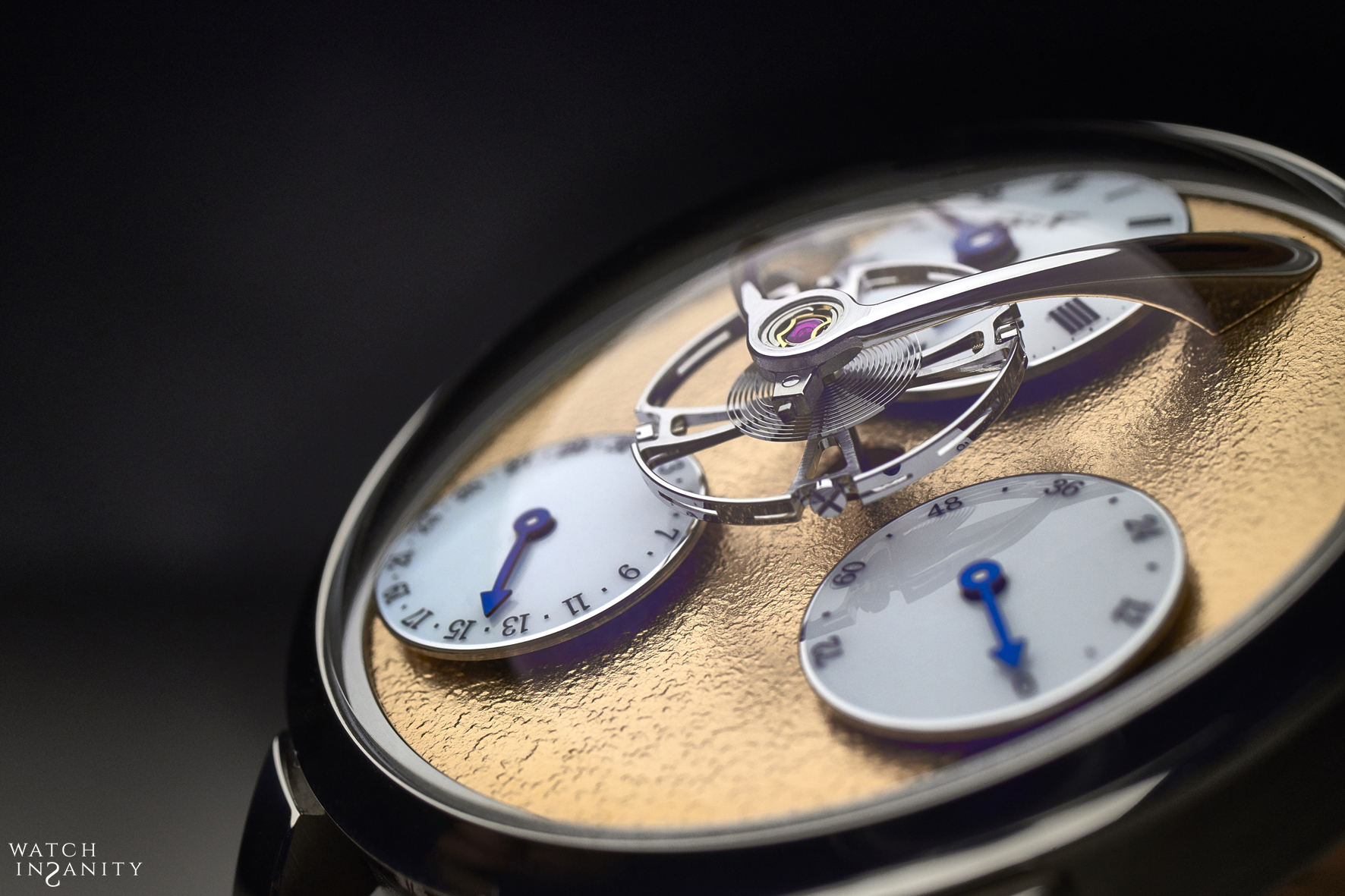 During 2011’s SIHH Maximilian Büsser pulled the cloth above the tray where two round watches were laying upside down, and completely changed the history of MB&F and contemporary watchmaking. At a first glance we were so stunned we didn’t realize that on the movement side there was no balance wheel… our focus was all on the insane finishing and anglages, and on the names engraved, Jean-Francois Mojon and Kari Voutilainen. We immediately realized that we were witnessing a turning point for MB&F.