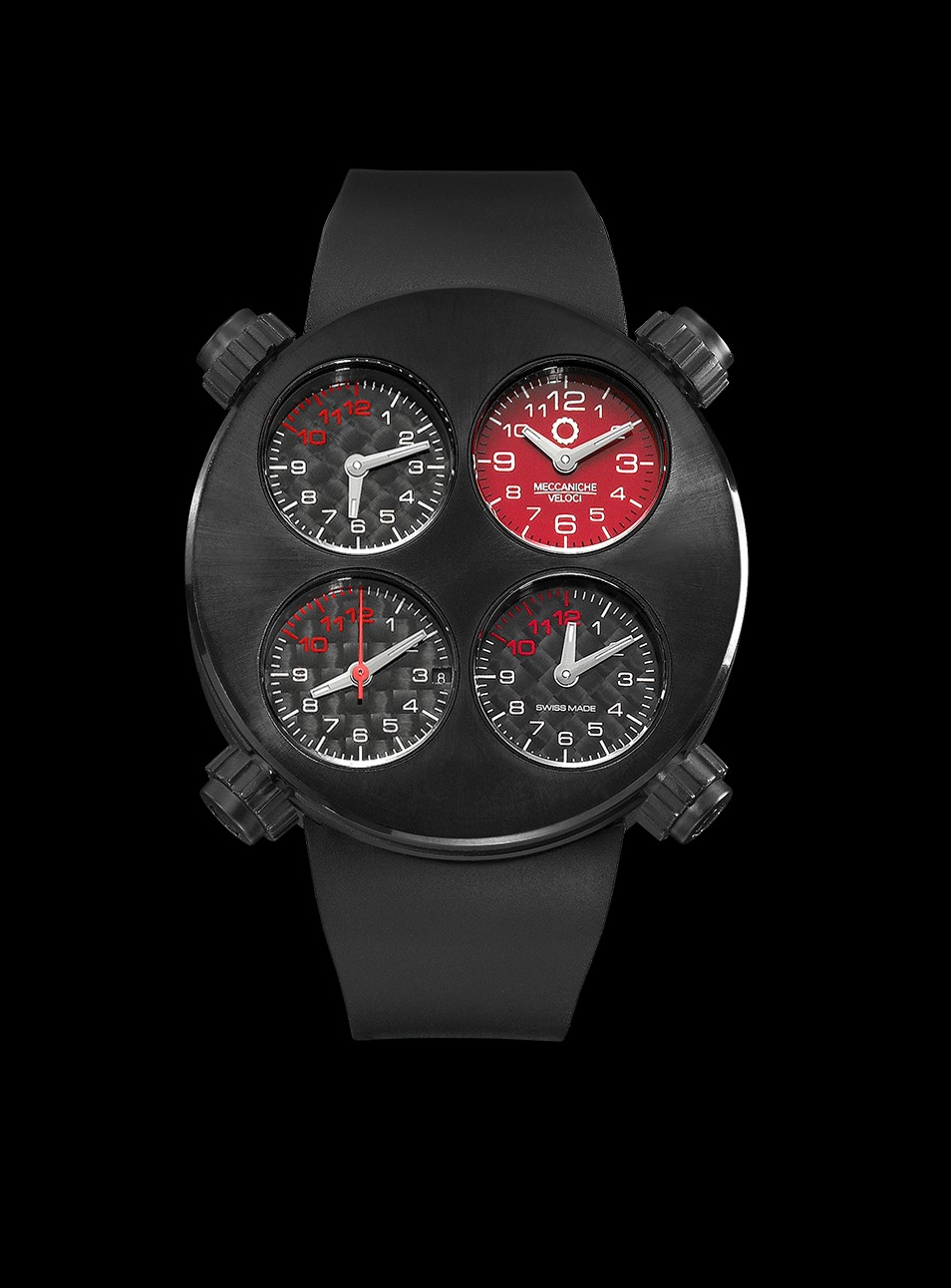 I overcame my prejudices and I had to admit myself that I felt comfortable wearing the bold model, despite the large dimensions and its four dials design, reminiscent of a piston. Not to mention the high quality watchmaking, since the model features the MV 8801, the first Meccaniche Veloci movement, allowing for the separate and simultaneous tracking of four different time zones.