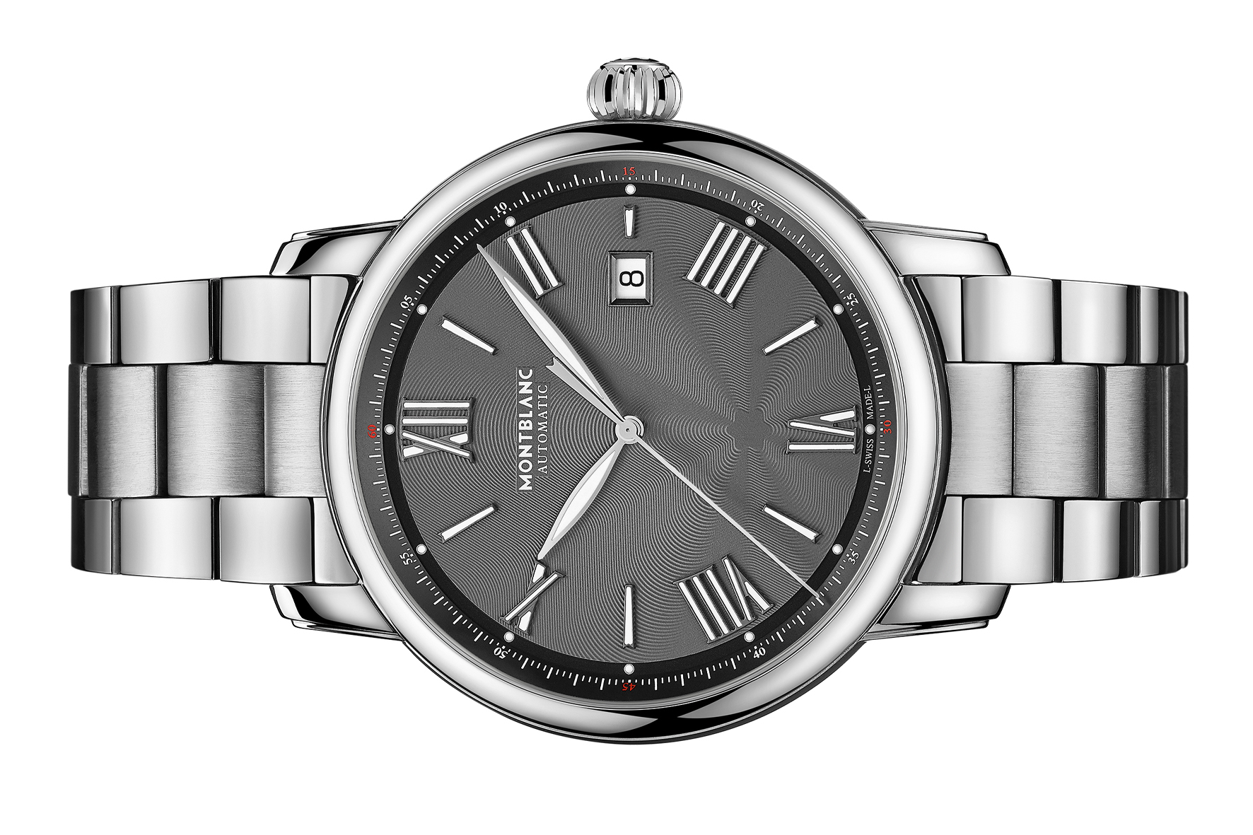The new Montblanc Star Legacy Automatic Date comes in a 43mm stainless steel case with a domed sapphire crystal with anti-reflective coating and a sapphire crystal case back. There are two dial colours, one in ivory with a silvery-white flange and featuring 18 K rose gold-coated Roman numerals, indexes and hands, and the other in anthracite with black rhodium coated Roman numerals, indexes and hands.