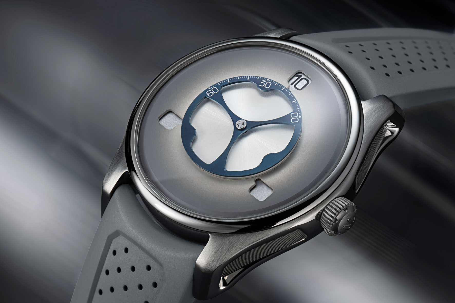 The second, in steel, is the very essence of purity with a White fumé dial and a subtle industrial aesthetic. This piece is not limited, but is no less extraordinary (Price CHF 29,000 + TAX). On the dials of these two models, stripped of any logo and indices, several satellites rotate: In the centre, the main disc, which has been completely skeletonised, displays the minutes over an arc of 120°; three smaller discs are arranged around this disc, hidden under the dial, turning around their own axes and revealing the hour numerals in turn in a window on the dial.