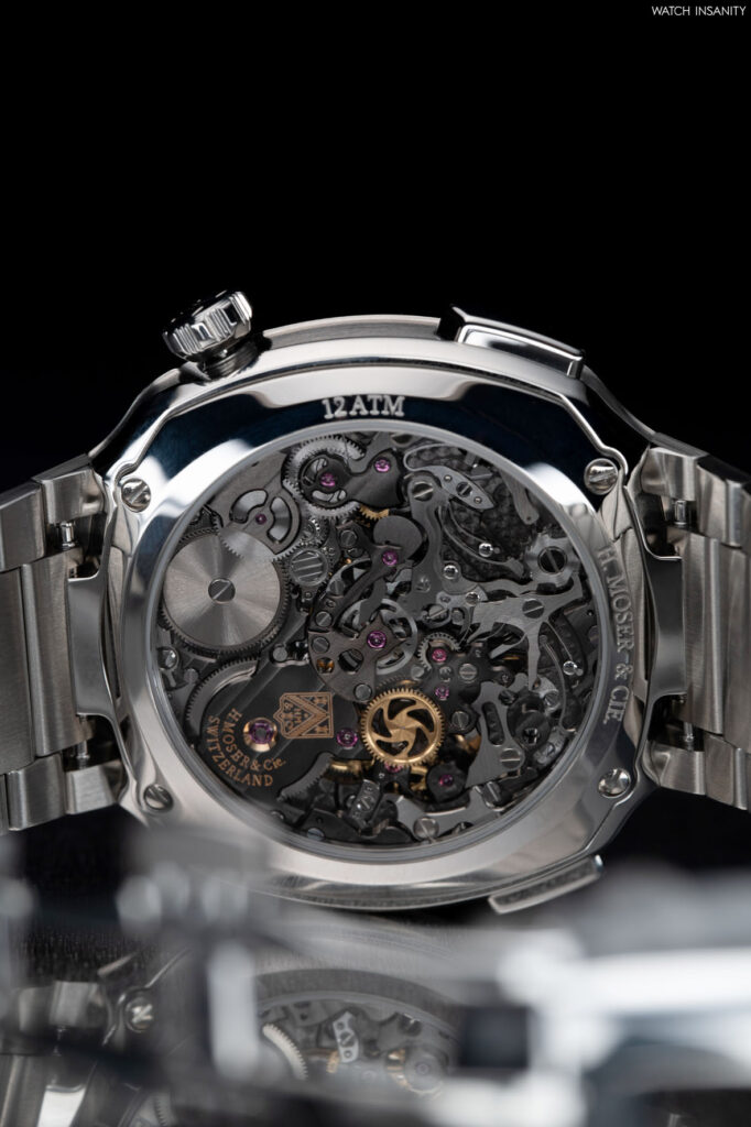 Specifically, the change in form concerns the logo, the change in substance concerns the calibre. Both were inspired by other watches already in H. Moser & Cie’s collections and make this version of the Streamliner Flyback Chronograph Automatic very contemporary.