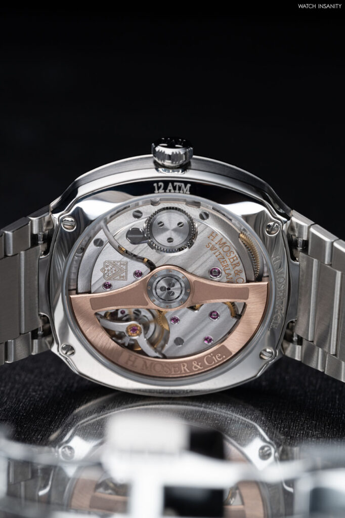 And also for the movement that animates it, of course. The HMC 200 automatic calibre, in fact, is entirely manufactured – a feature which, in this case, isn’t just a good marketing argument. We visited the H. Moser & Cie. manufactory in Neuhausen am Rheinfall and saw how watches, including calibres, are made. Their precision and, why not, their beauty, are the logical consequence of the care and perfection that goes into every stage of production, from design to development to manufacture.