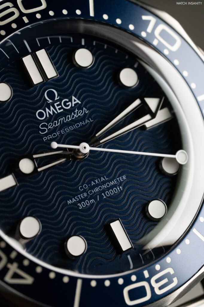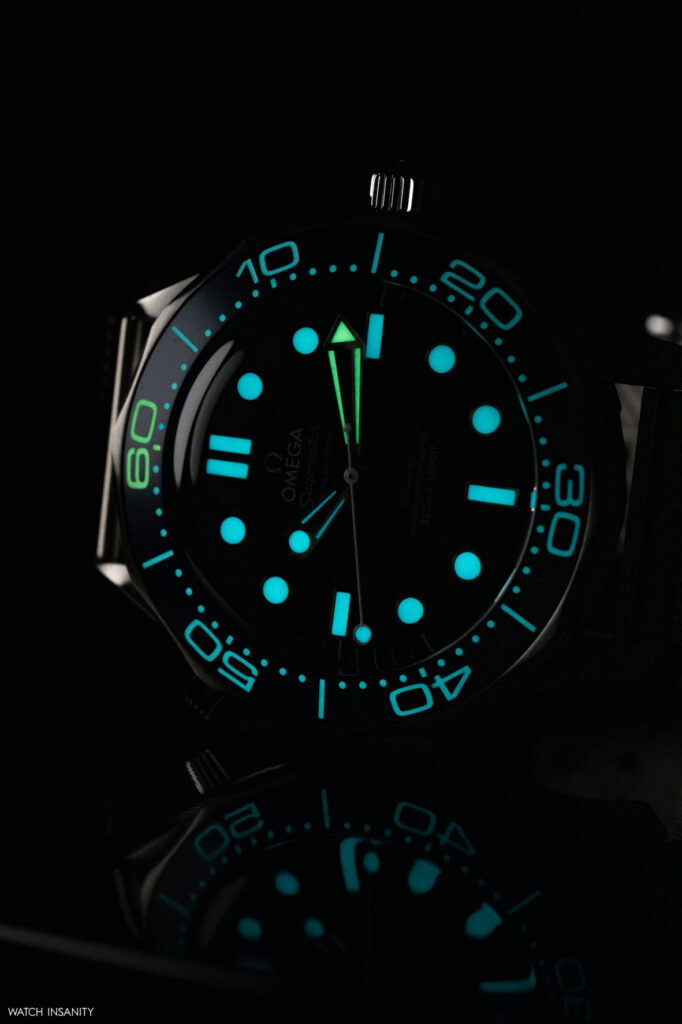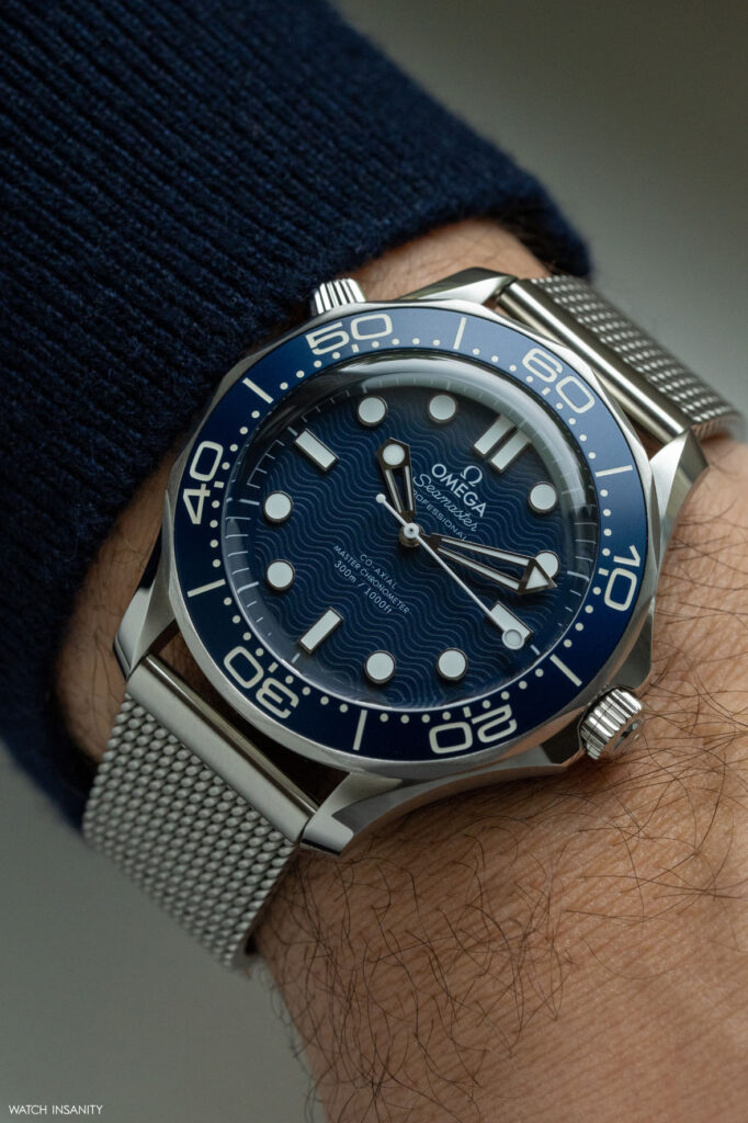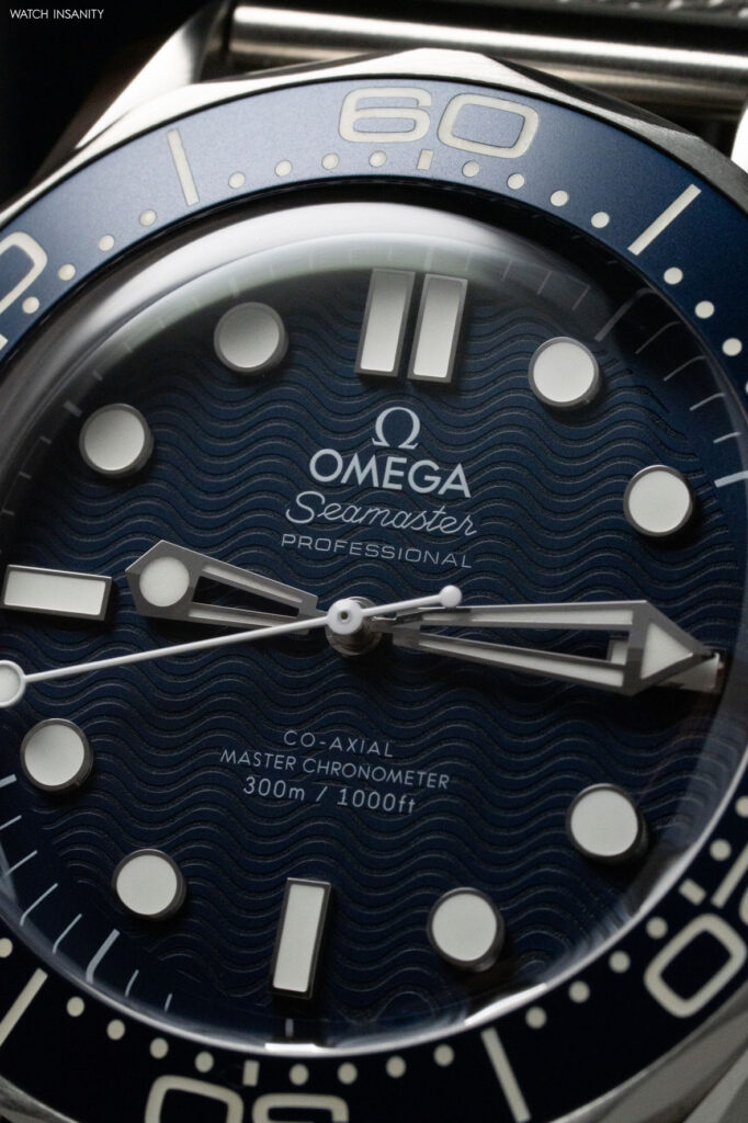 Even the dial is a tribute to James Bond’s first watches, as is clear from the laser-etched wave pattern on the surface, in blue aluminum like the bezel. The look is completed by the modern colored Super-LumiNova without artificial patina (it glows in a combination of blue and green, with the latter on the minute hand and 60 on the bezel), the absence of the date window, the classic skeleton hands of the Seamaster Diver 300M. The unexpected touch is given by the so-called “lollipop” seconds hand, white and with a luminous dot at the tip.