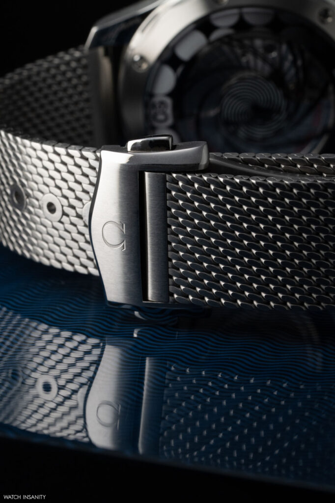 That is just as the Milanese mesh bracelet that completes the watch. Of course, it is in steel, as is the case, and not in titanium like that of the predecessor – but just as soft. Case and bracelet make the wearability smoother, as does the lug-to-lug under 50 mm (49.9) and the case thickness of 14.3 mm. More than 1 mm thicker than the No Time To Die but the coup de théâtre of the animated case back, although with some variations, had to pay a little tribute.