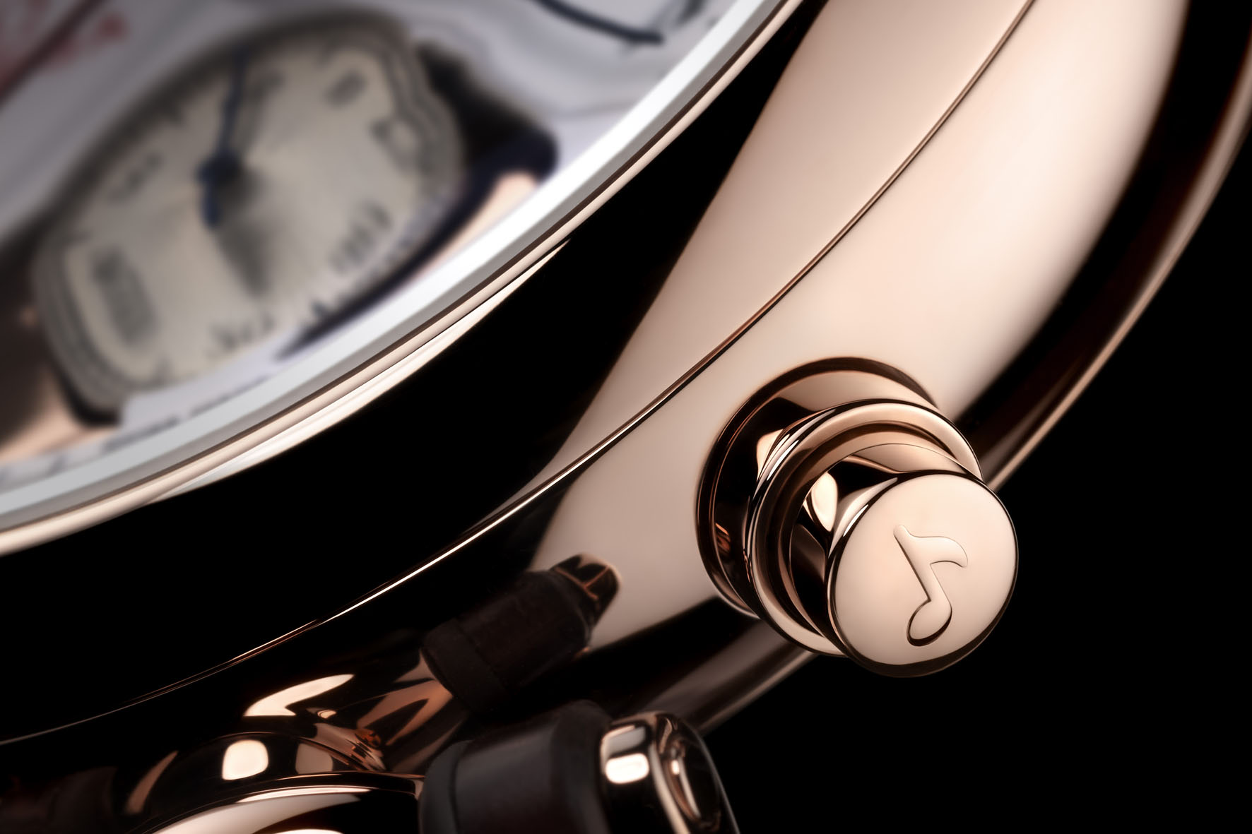 As well as being strikingly good looking, OMEGA’s 18K SednaTM Gold produces a beautiful sound when struck. Double hammers, fitted with an insert of hardened steel, hit pitch-perfect 18K SednaTM Gold gongs, hand-tuned by OMEGA’s watchmakers. These gongs, fixed to the case body to produce maximum chime, are a respectful nod to the bells used by OMEGA to signal the last lap at the Olympic Games and other sporting events. Bronze-age timekeeping technology still in use.