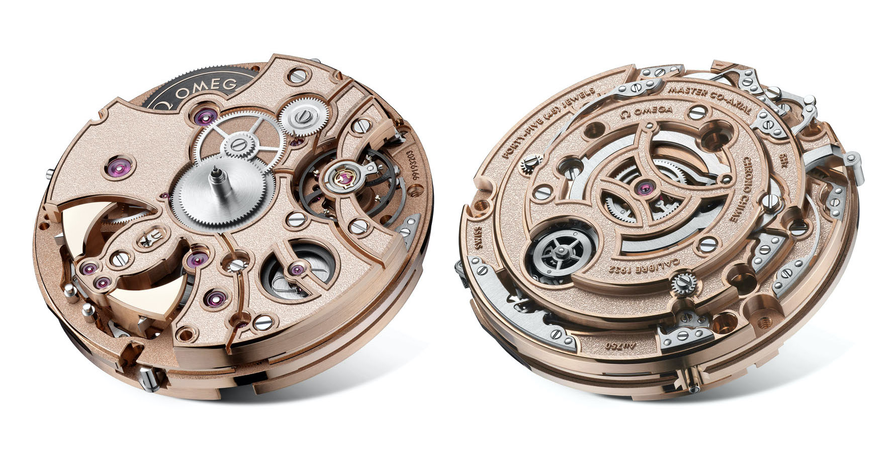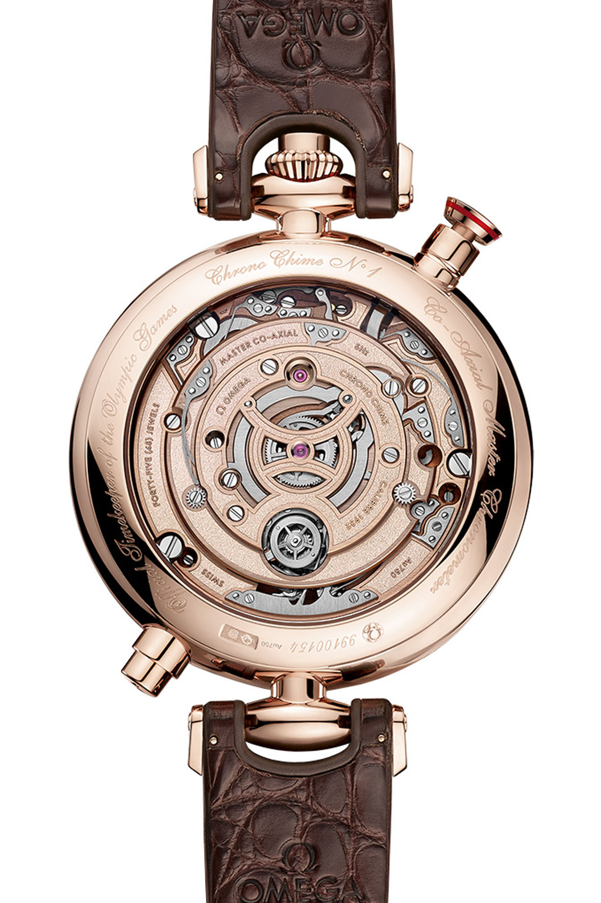 1932 Olympic Games. It didn’t stop there. The watchmakers would also have to add three chime cams to the already complicated chronograph mechanism, include two security functions to prevent mal-manipulation, and integrate a split-seconds function. What’s more, to achieve Master Chronometer status, the calibre would have to withstand external magnetic fields of 15,000 gauss, requiring the use of 50 non-ferrous components.