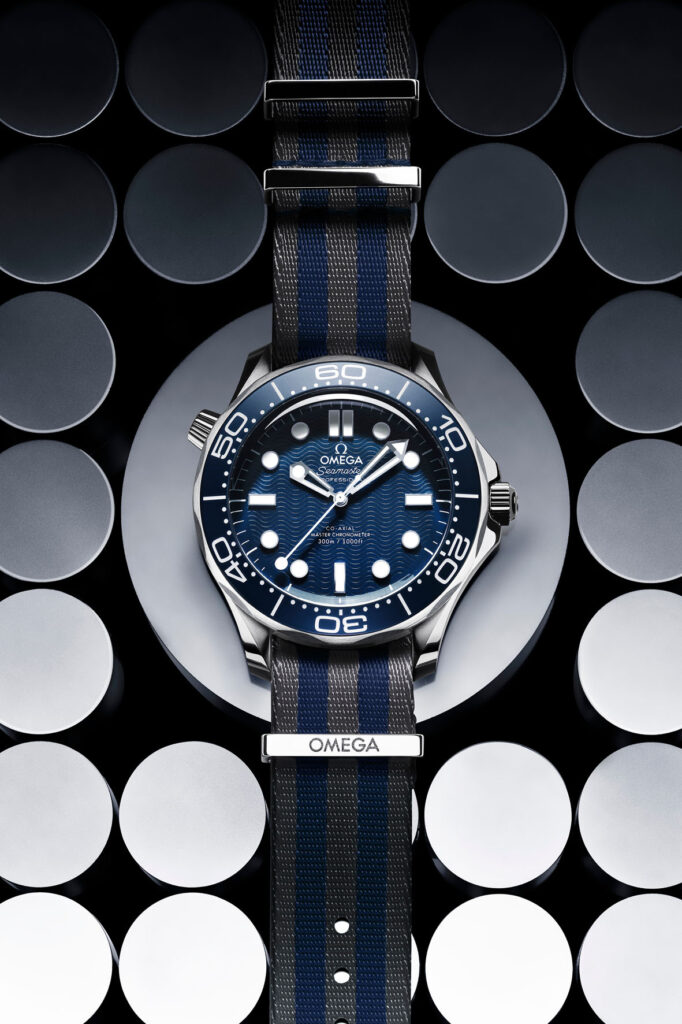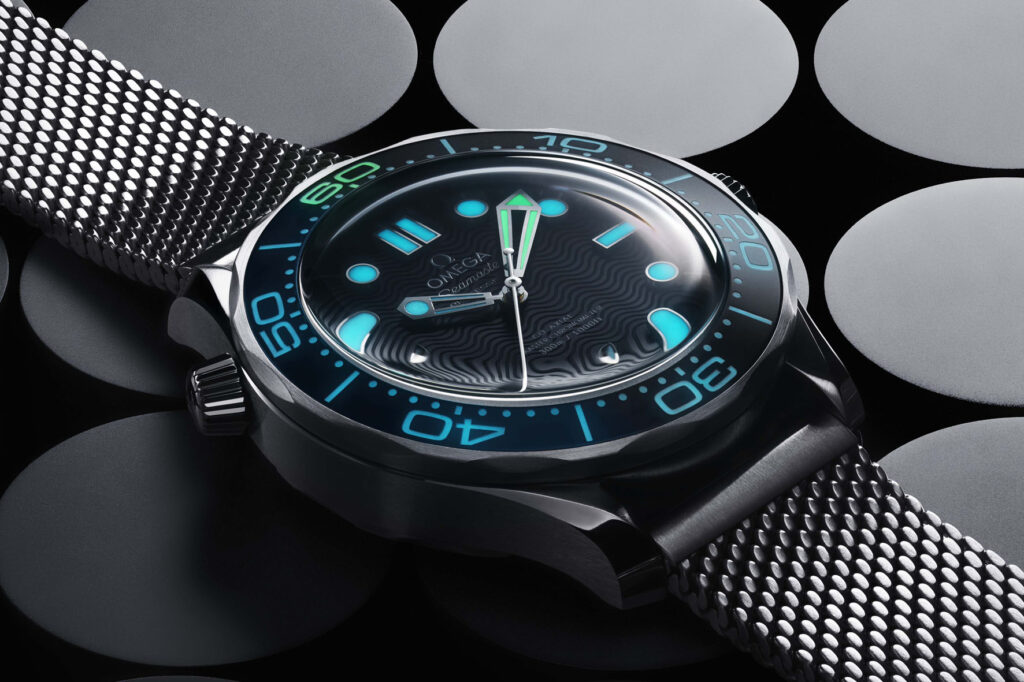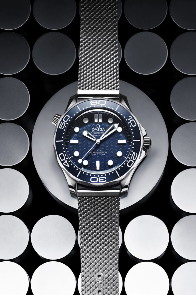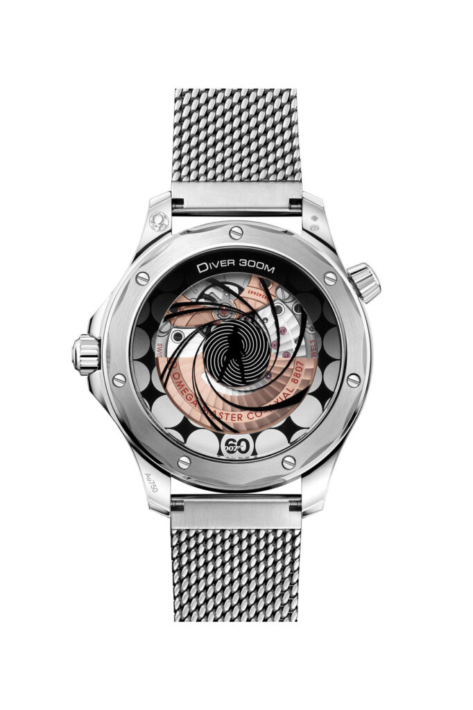 The watch is driven by a Co-Axial Master Chronometer Calibre 8806 and is presented on a mesh-style bracelet – in the same style as James Bond’s OMEGA watch in No Time To Die.