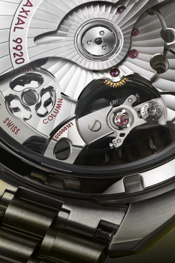 Providing the power is the in-hous Co-Axial Master Chronometer 9920, a perfect amalgamation of the many milestones on the road to SpirateTM and certified at the industry’s highest level by the Swiss Federal Institute of Metrology (METAS). As always, proof of this certification is provided by a distinctive red METAS card, which in this case includes confirmation of the 0/+2 seconds a day.