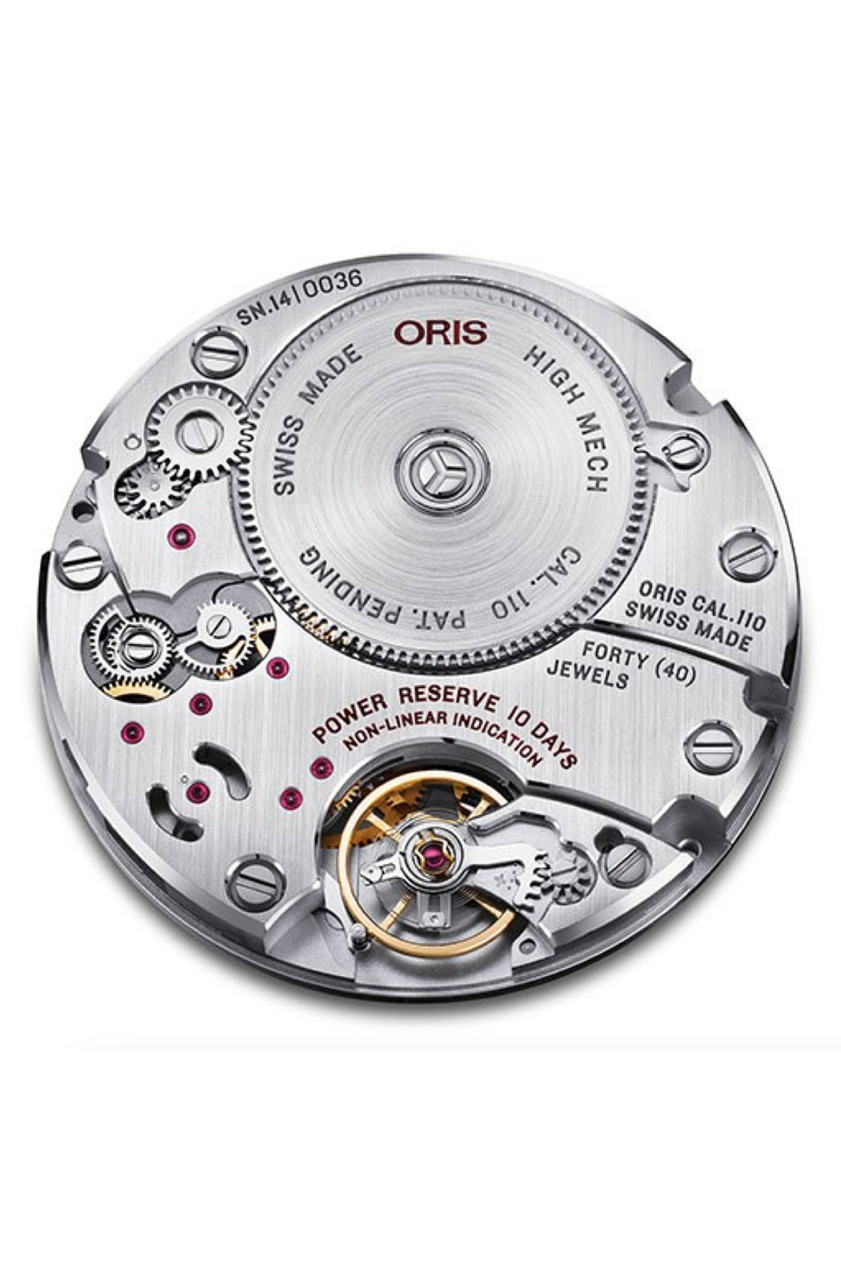 In 2014, to celebrate its 110th anniversary, Oris presented the new Cal. 110, the first hand-wound mechanical movement developed entirely in house since the 1980s, representing the marriage of two complications never seen together before: a 10-day power reserve and a patented non-linear power reserve indicator – each movement being assembled by hand.