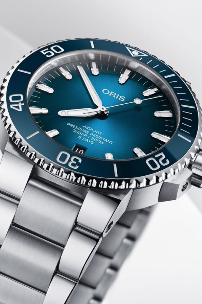 Calibre 400 is the beating heart of probably the most iconic Oris watch today, the Aquis Date, presented at first only in the 43.50 mm case diameter version and, more recently, in the resized 41.50 mm case as well. There are three dials: black, blue and green, all shaded. While the choice of bracelets is reduced to two: steel or rubber. In both cases the ingenious patented solution of the “Quick Strap Change” system is available, allowing for rapid replacement without the aid of tools. The last gem is the adjustable folding clasp, one of the most interesting (and beautiful) on the market. The price is 3,000 euros (2,900 for the rubber strap version). Among the best money spent on a mechanical watch today, at least among “real watches for real people.”