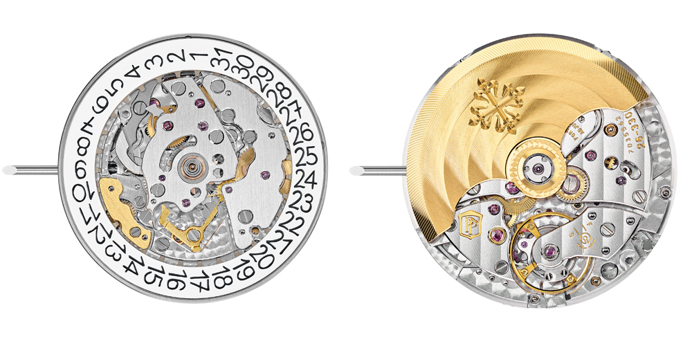 To display the day of the week and the number of the current week, Patek Philippe developed a totally new semi-integrated mechanism with a height of 1.52 mm, containing 92 additional parts. Thanks to a special plate developed and produced for this specific mechanism, the movement remains very svelte. A 7-point star on the hour wheel in the center of the movement controls the day of week display. Via a lever, a second 7-point star with an extended Sunday tip drives the 53-tooth week wheel. The calendar displays advance semi-instantaneously in discrete steps to avoid energy consumption peaks. Corrections of the day-of-week and week-number displays are performed with two push pieces recessed in the case flank at 8 and 10 o’clock. The date can be corrected with the crown pulled halfway out. Pursuant to the international ISO 8601 standard, Patek Philippe chose Monday as the first day of the week rather than Sunday, which is commonplace in some countries. The first week of the year is the week that includes the 4th of January. The 53-graduation scale considers years with an extra week. This is the case every 5 to 6 years. The next occurrence falls in 2020.