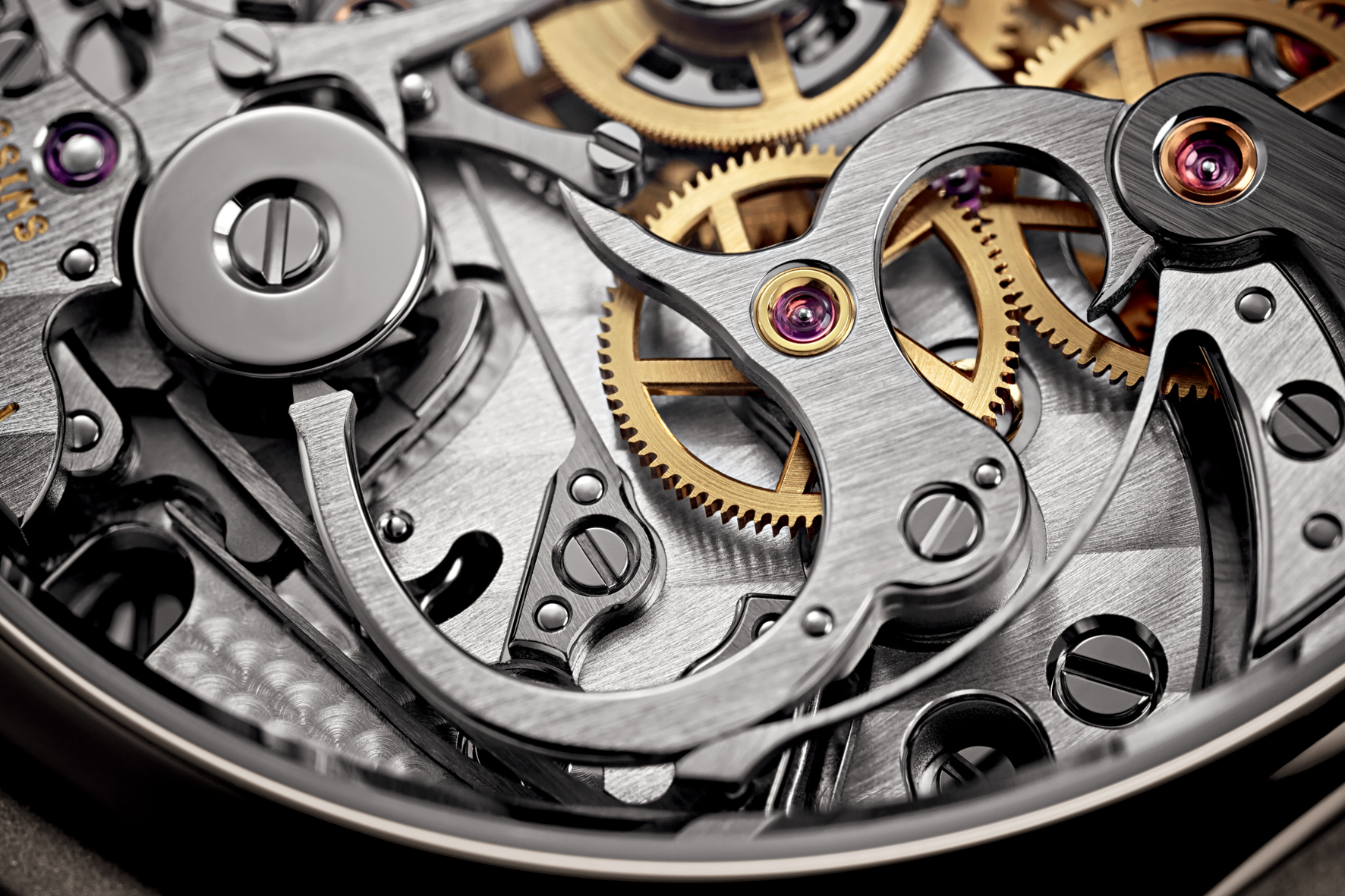 The caliber CH 29-535 PS Q movement, the very first chronograph with a perpetual calendar developed completely in the manufacture’s workshops, stands out with its classic architecture (horizontal clutch, column wheel, manual winding), the six patented chronograph innovations, as well as its extremely svelte calendar mechanism (182 parts with a height of 1.65 mm). The beauty of the movement can be admired with a glance through the sapphire-crystal case back that can be interchanged with a gold platinum back which comes with the watch.