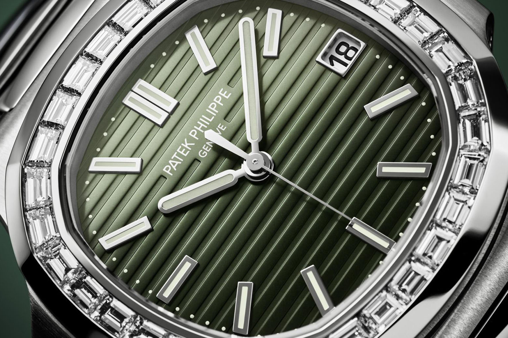 7 April 2021To celebrate the opening of Watches and Wonders Geneva 2021, Patek Philippe is providing a place of honor for its legendary Nautilus collection. Following the announcement that 2021 will be the last production year of the stainless steel model Ref. 5711/1A, Patek Philippe presents a totally new olive green sunburst dial for this icon of casual elegance. This new dial will also be available in a version featuring a bezel set with baguette diamonds.
