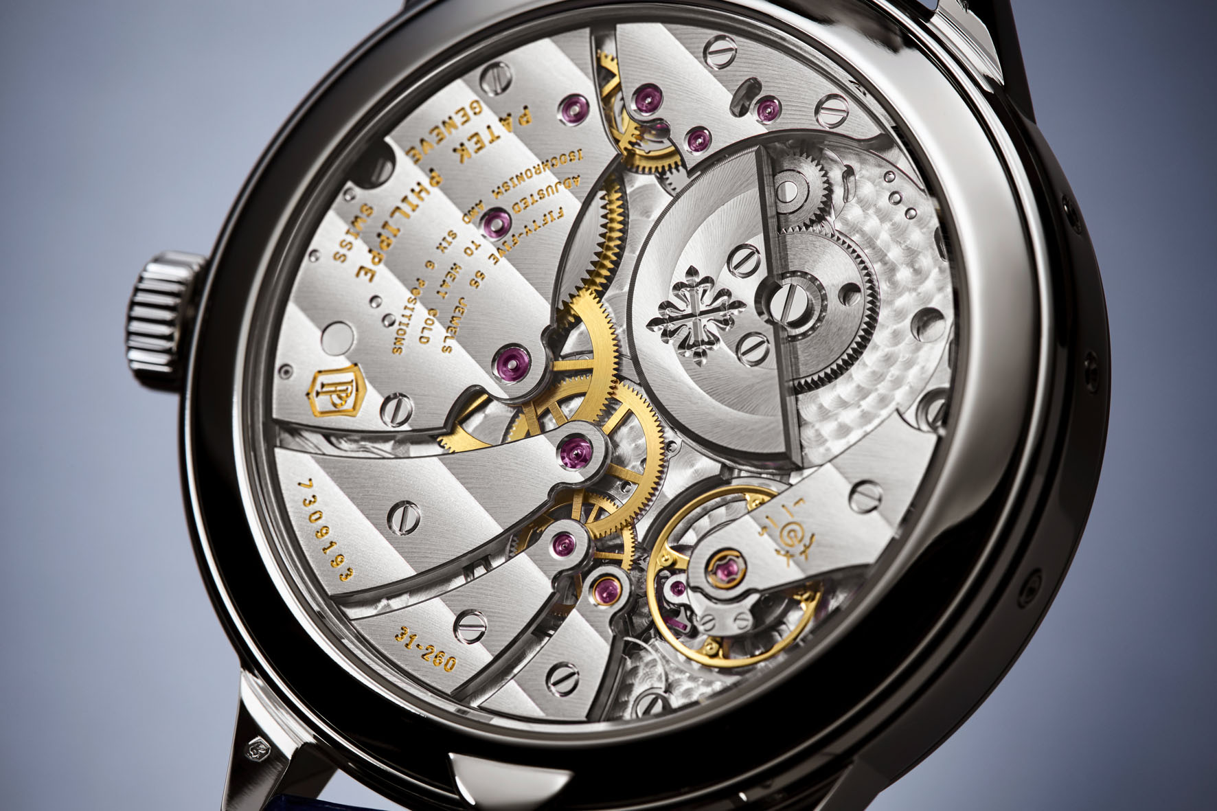 A single date disk with 31 numerals would have been too small and less easily legible. In compliance with the manufacture’s basic principles as set forth in the directives of the Patek Philippe Seal, the new, complex mechanical ensemble had to be implemented with the smallest possible diameter and minimized height without compromising its maximum long-term dependability. For this reason, the project team proceeded on the basis of the caliber 31-260 REG QA that was originally launched in 2011 with the Ref. 5235 Annual Calendar Regulator. Not least because of its eccentric recessed minirotor, this self-winding movement with subsidiary seconds at 6 o’clock is extremely slender.