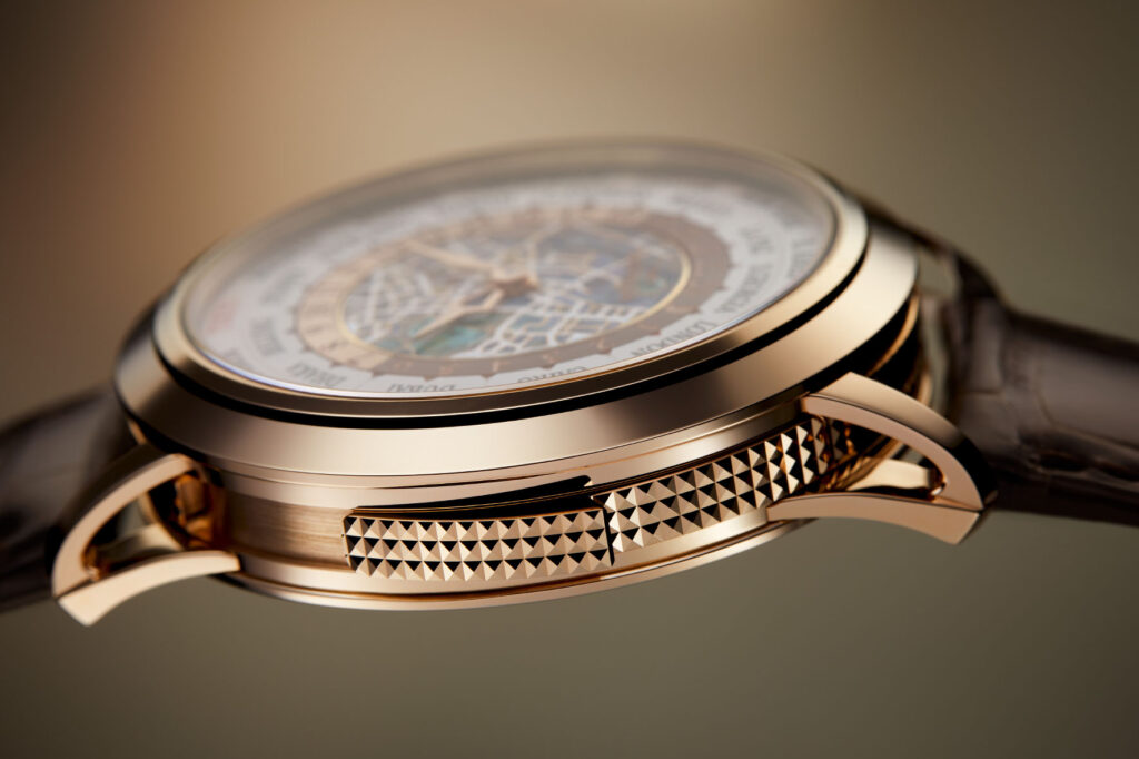 Launched in 2017, Reference 5531 made its mark as the first minute repeater that always chimes the local time; that is, the time in the time zone selected at the 12 o’clock position and displayed by the center hands. Patek Philippe equipped it for that purpose with the new self-winding caliber R 27 HU, notable for its original, patented construction. The local time is displayed by a pierced hour hand in rose gold, its silhouette inspired by the Southern Cross constellation. The 452-part movement resides in an elegant 40.2 mm rose-gold caseits case band and minute-repeater slide embellished with a hand-guilloched “Clous de Paris”, or hobnail, motif.