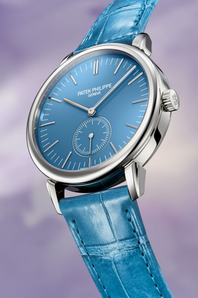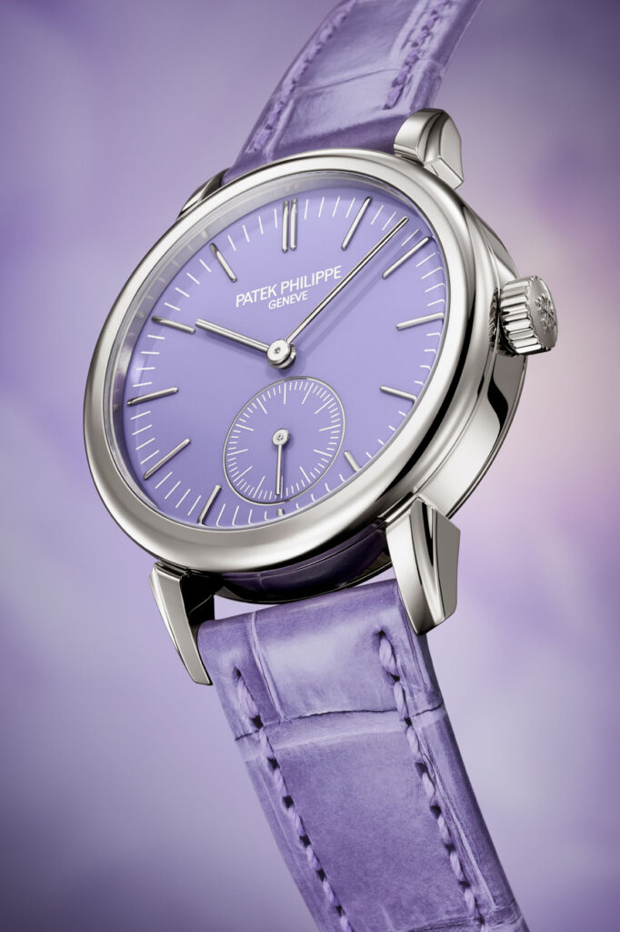 The men’s Reference 6127G-010 (diameter 36 mm) features a dial in light-blue lacquer and a matching shiny alligator-leather strap, while the dial and strap of the ladies’ Reference 7127G-010 (diameter 31 mm) are in a delicate lilac shade. The white-gold cases are polished throughout and their backs adorned with the engraved inscription “Patek Philippe – Tokyo”. They house the caliber 215 PS manually wound movement, the manufacture’s smallest mechanical caliber. These two editions are limited to 400 watches each, of which 300 are sold as a set in a double presentation box for the two watches, while 100 may be acquired separately.