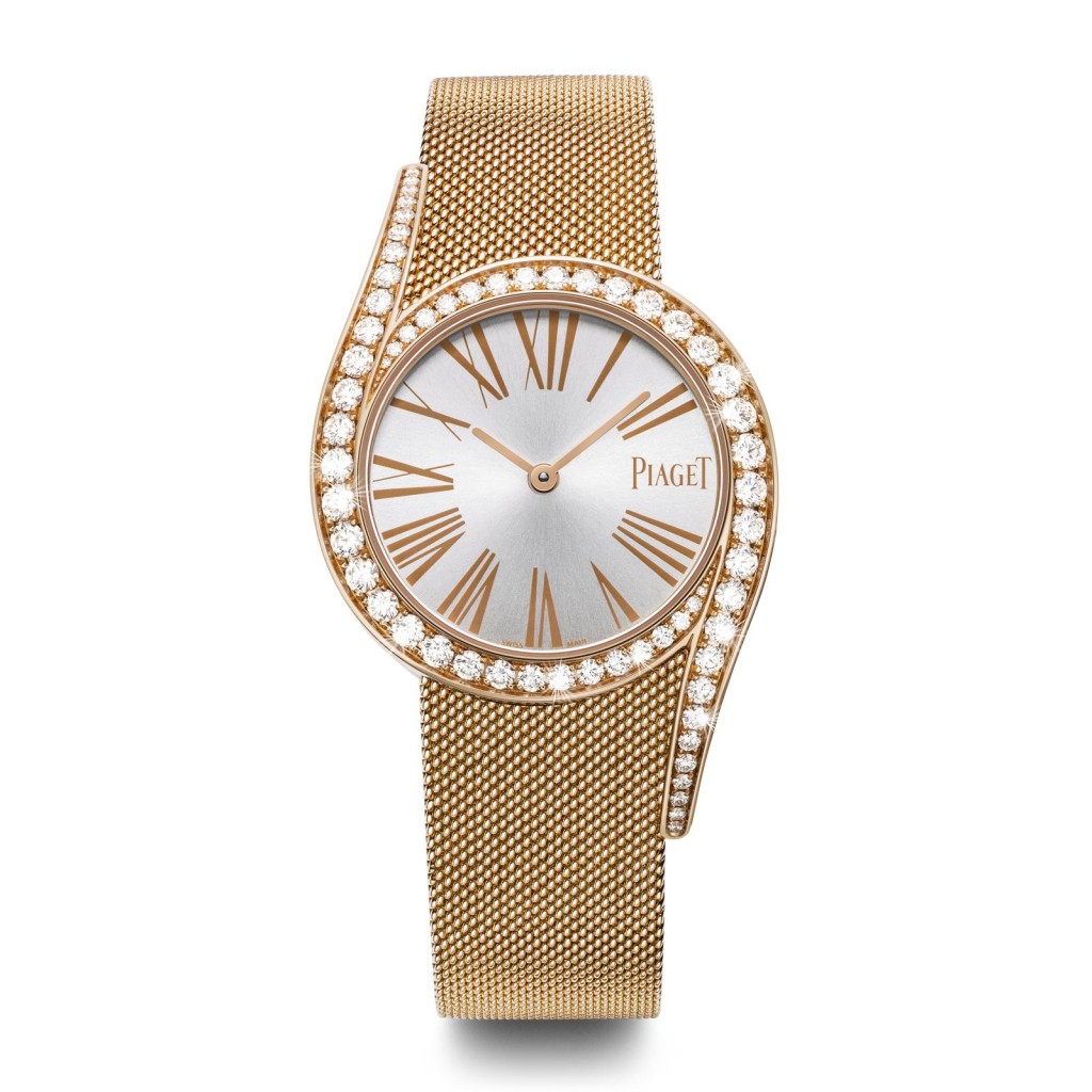 8 April 2016It is recognisable at first glance by its round case enhanced by two dainty elongated asymmetrical lugs, its voluptuous curves highlighted by a bezel set with graded round diamonds, as well as its pure dial punctuated by slender Roman numerals. The Limelight Gala is the epitome of absolute femininity according to Piaget: inherently elegant and supremely sensual.