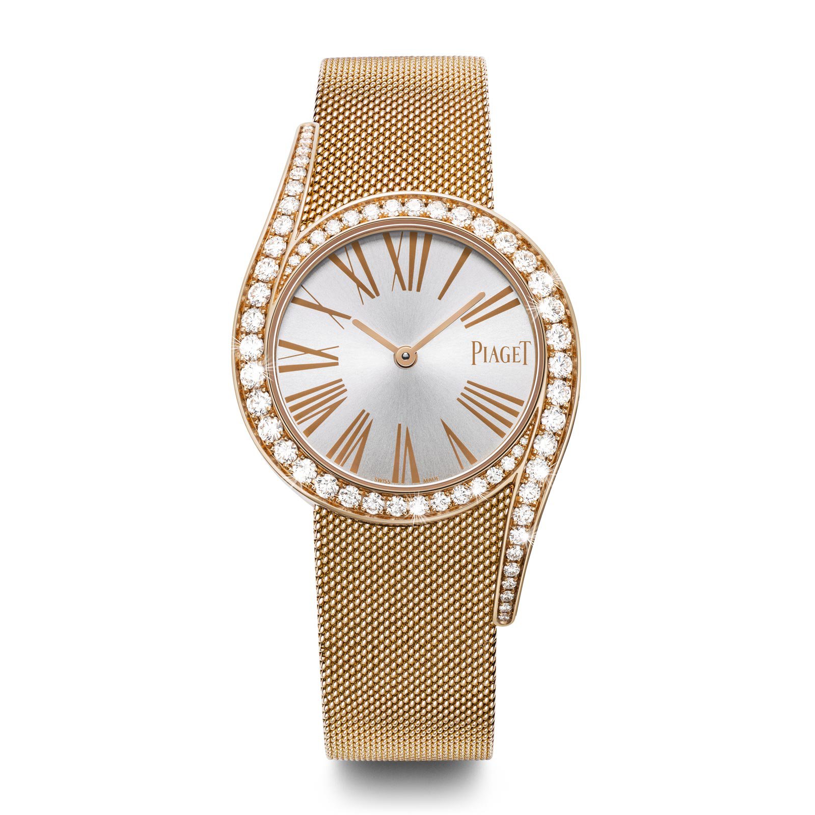 Seamlessly integrated within the case (diameter 32mm) and meticulously adjusted, the Milanese mesh bracelet makes a perfect match with the bezel and its diamond-set elongated asymmetrical lugs. The superbly supple and silky noble material flows and shimmers over the skin while the intrinsic wearer comfort reflecting the superlative standards of the Maison is as exceptional as ever.