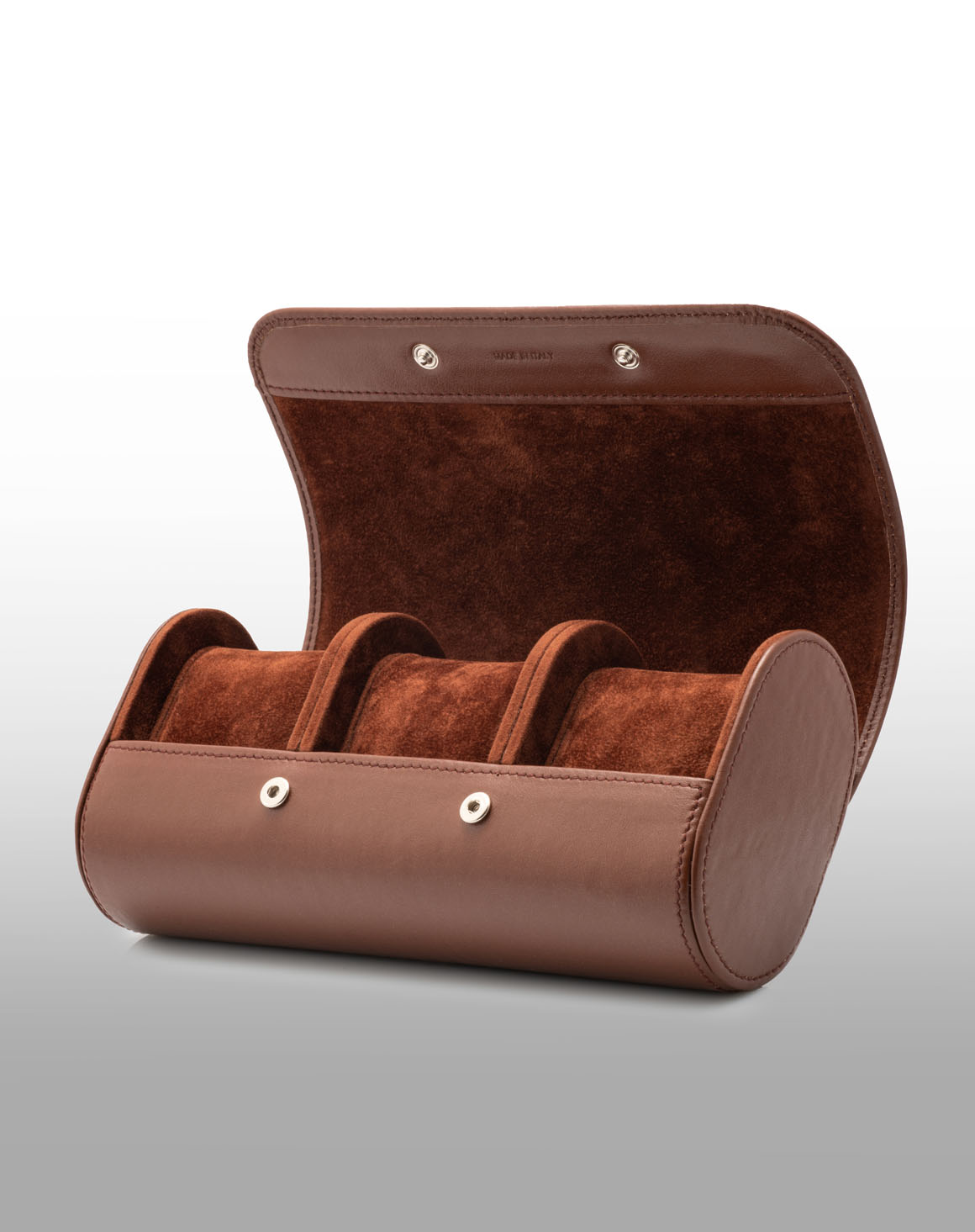 Designed to hold up to three watches, our watch roll is the ideal accessory for storing your timepieces. Made from leather on the outside with suede lining on the inside, it features an internal rail system that allows each cushion to slide and lock into its own section with ease and precision.