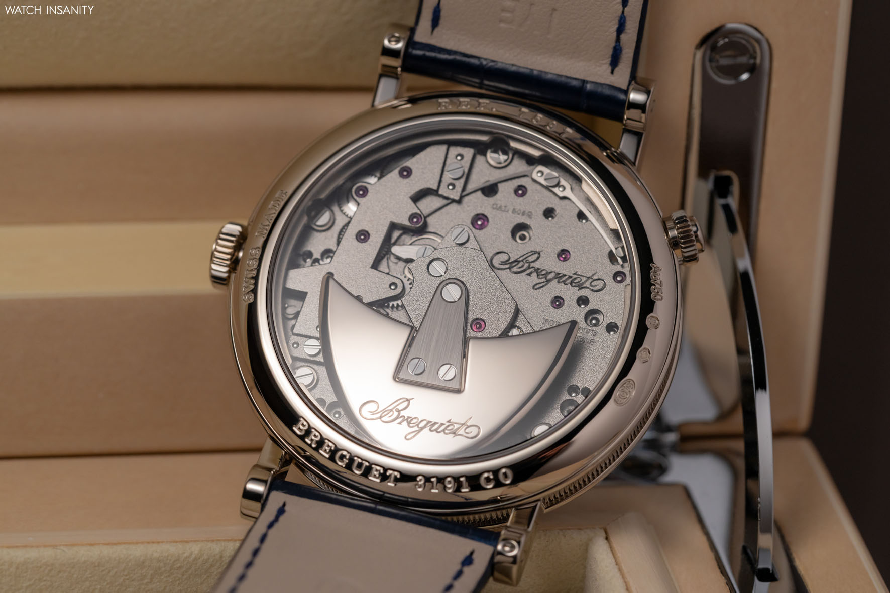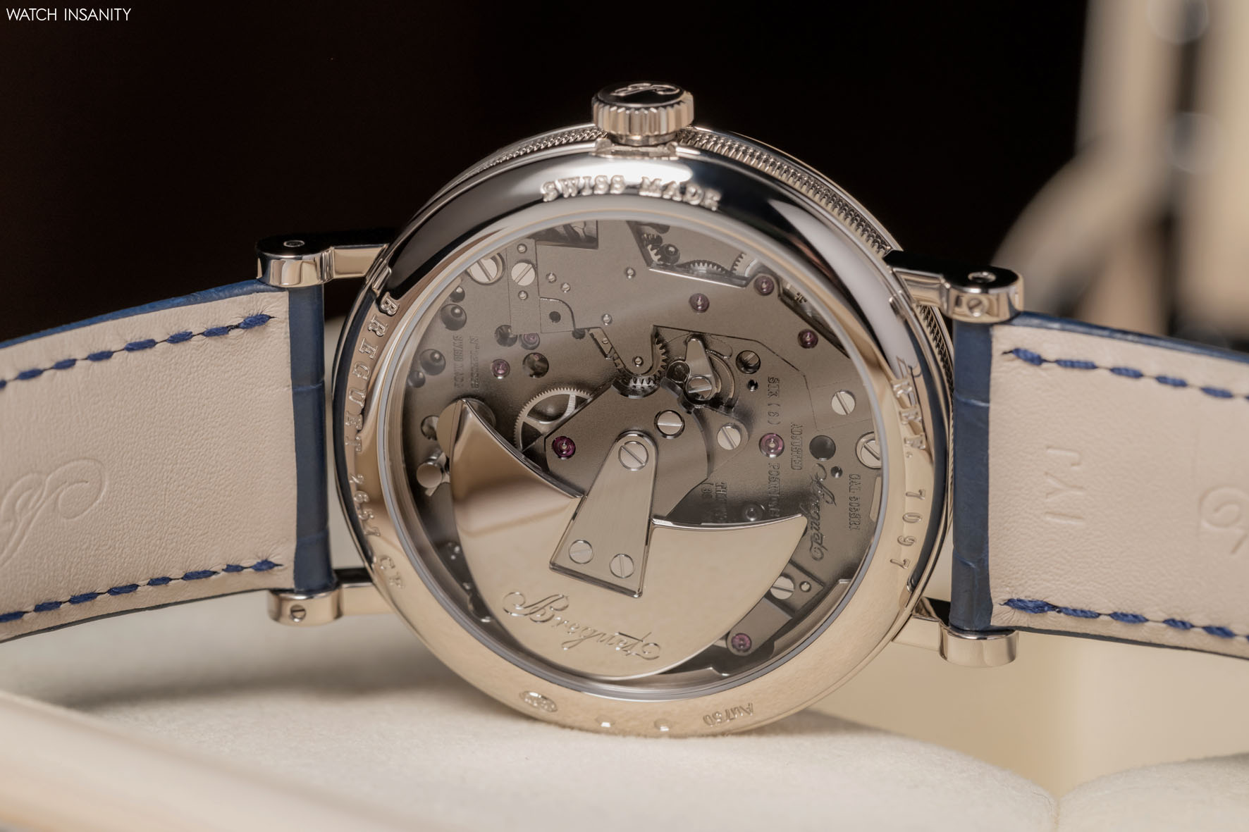 As written above, the basic considerations regarding the case, the finishing, the architecture that Breguet has given to the various parts of the movement placed on the dial, and the workmanship of the hour dial are essentially identical on both the Tradition Automatique Seconde Rétrograde 7097 and the Tradition Quantième Rétrograde 7597. The complication changes, and not only a little, as does its scenic presence.