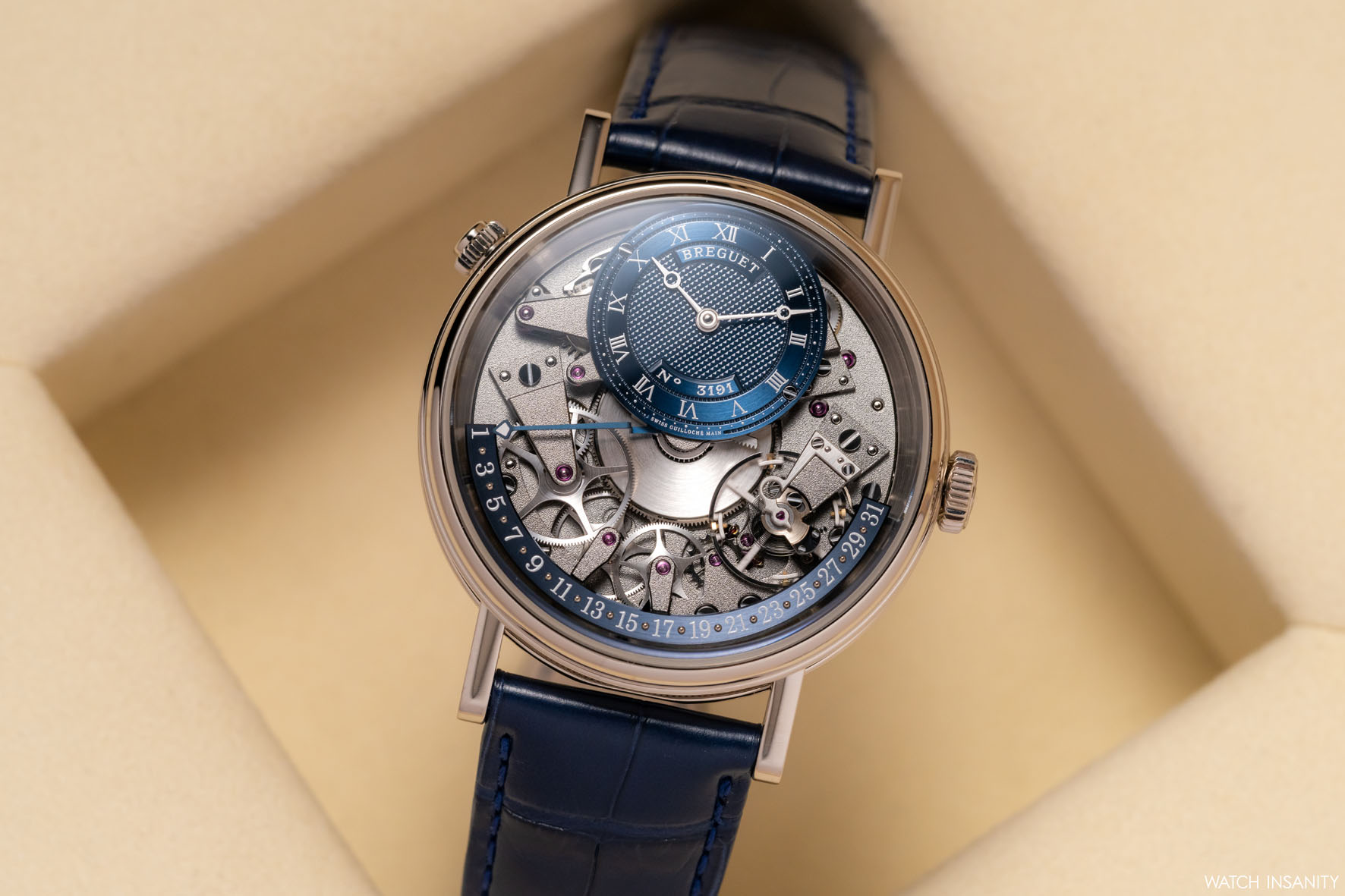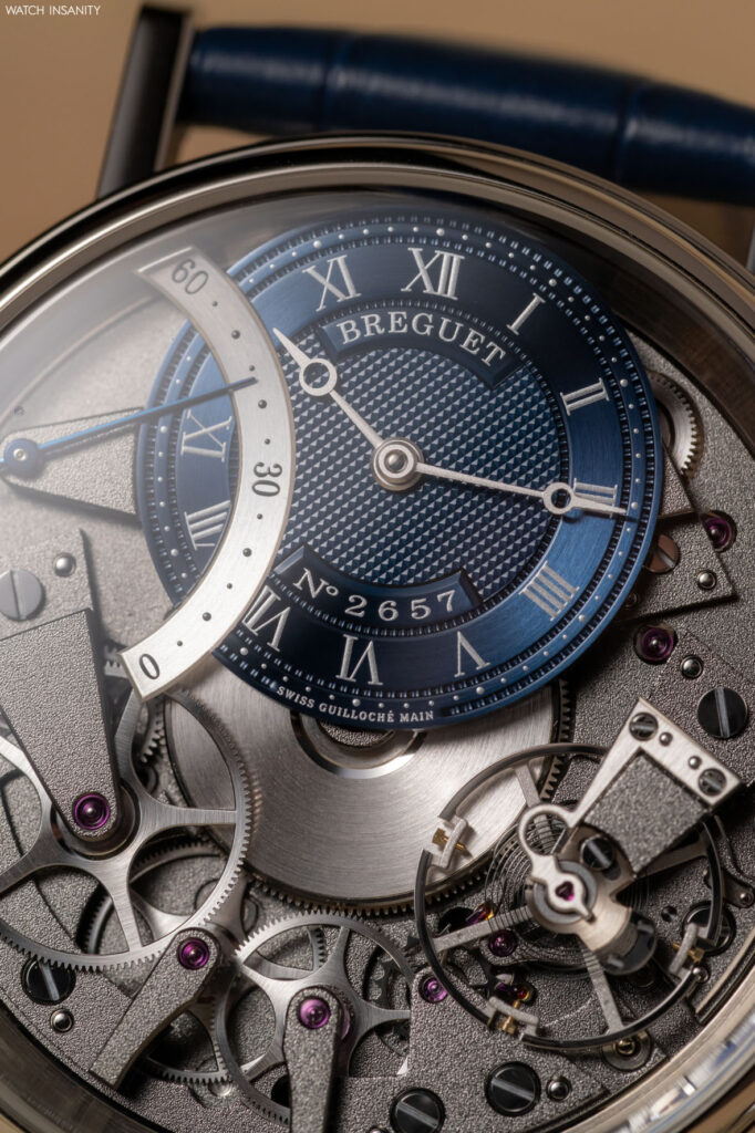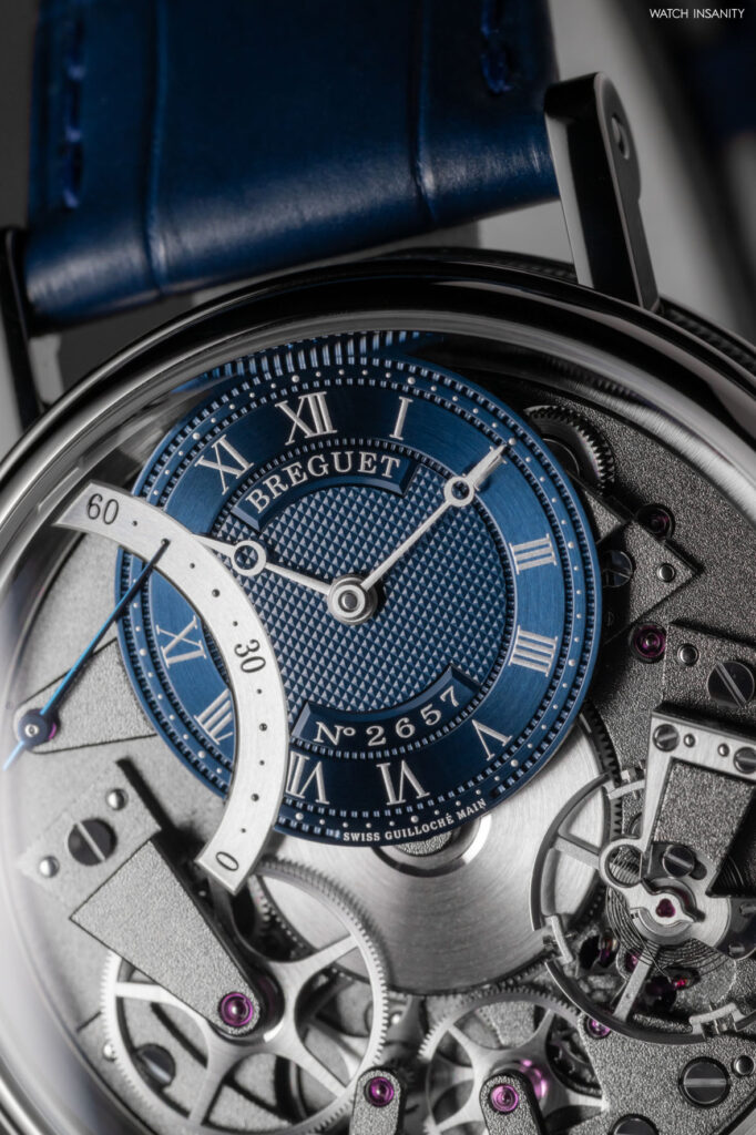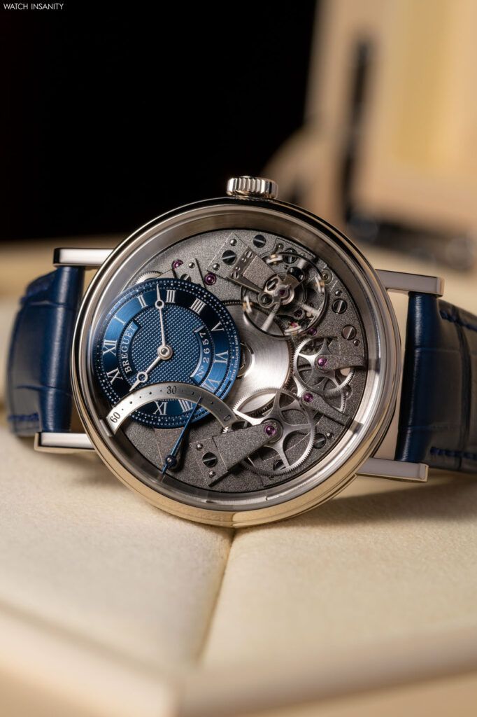 In the case of the Tradition Automatique Seconde Rétrograde 7097, the sight of the mechanism alone is worth the price of the watch, if one may so speak. We have chosen to photograph the reference with the blue dial, a boutique edition, and therefore only available in Breguet boutiques around the world. A version, in our opinion, of unique elegance.