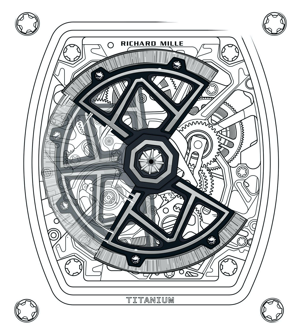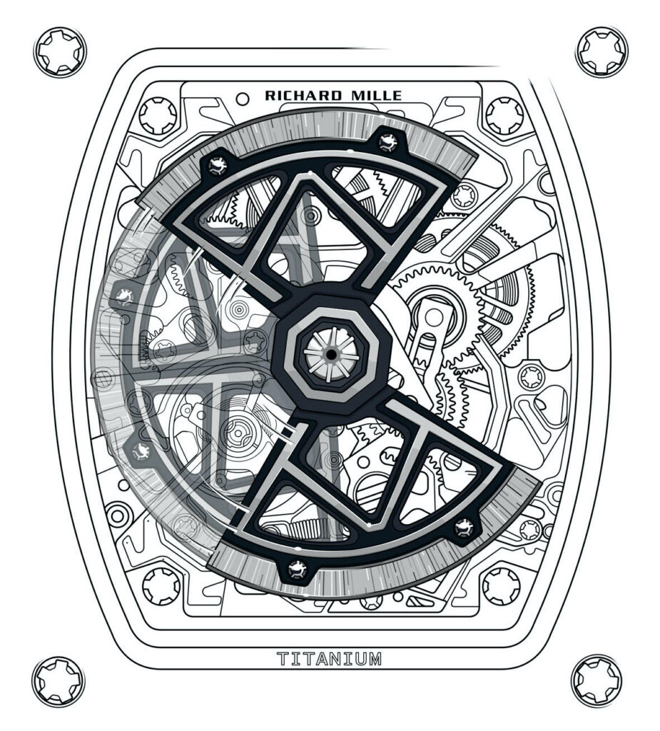 Following three full years of development, Richard Mille has coaxed from its chrysalis this new system for movement winding which spreads its wings in the RM 35-03. While the Calibre RMAL1 of the RM 35-02 already possessed a variable geometry rotor – a signature component of Richard Mille automatic movements – the new butterfly rotor of the RM 35-03 allows the wearer to directly interact with the rotor’s geometry, controlling the movement’s winding speed based on lifestyle and activity levels, for a complication that is playful and practical in equal measure.