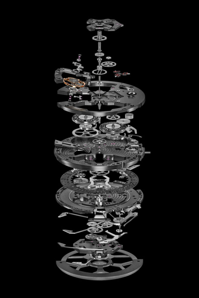 That same complication has remained a symbolic and integral part of Roger Dubuis’ watchmaking ever since then, and after 30 years of evolution, the journey has culminated in this fifth chronograph generation, first released in 2023, and which the Maison is now taking to new heights with the launch of the new Excalibur Spider Flyback Chronograph.