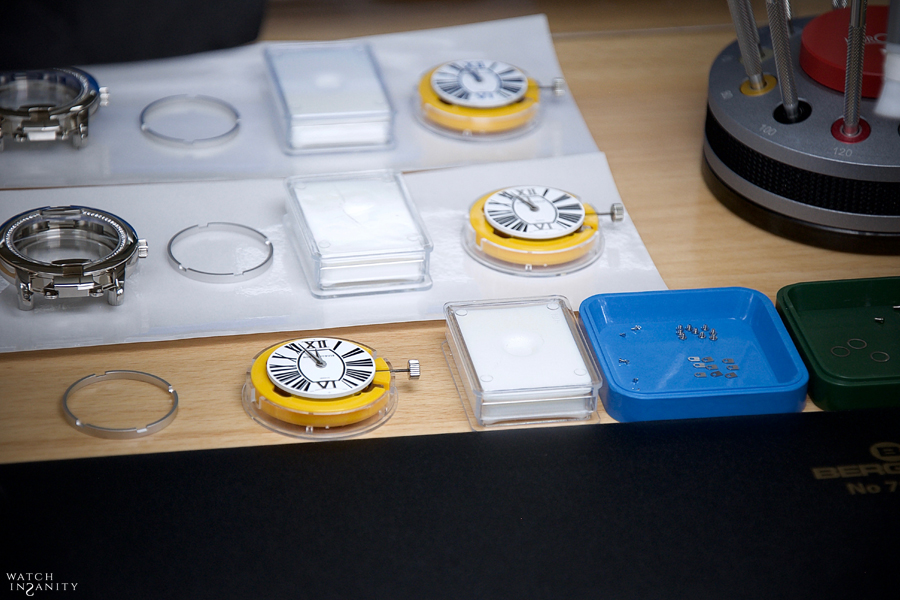 Climbing to the second floor of the manufacture we reach the place where, in an incredible silence, the watchmakers perform the delicate phase of the assembly of a movement, followed by the casing. We discover that it takes the technicians approximately two weeks to assemble and several days for the control of all the functions of the watch, like the water resistance tests, power reserve, and accuracy tests. Every watch that doesn’t pass the tests will be disassembled and reassembled until it reaches the required level.