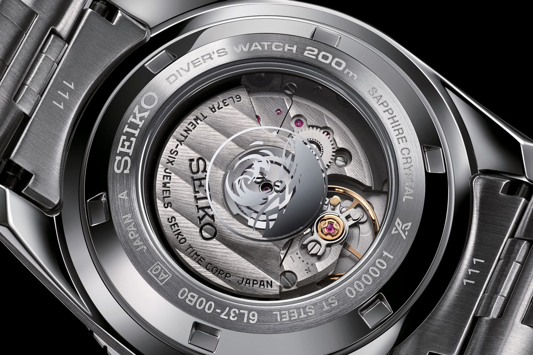 For the first time in a Seiko diver’s watch, the new Marinemaster creations feature an exhibition case back, allowing a view of this finely finished, high-performance mechanical movement. The development of a diver’s watch with a see-through case back, a feature that tends to add thickness, presented its own challenges. The new watch needed to maintain the high level of water and shock resistance that Prospex usually achieves with a closed case back while also keeping the profile thin. By reconsidering the case structure and using the slimline Caliber 6L37, Seiko created what is its thinnest mechanical diver’s watch currently (12.3mm) while adding a view of the movement.