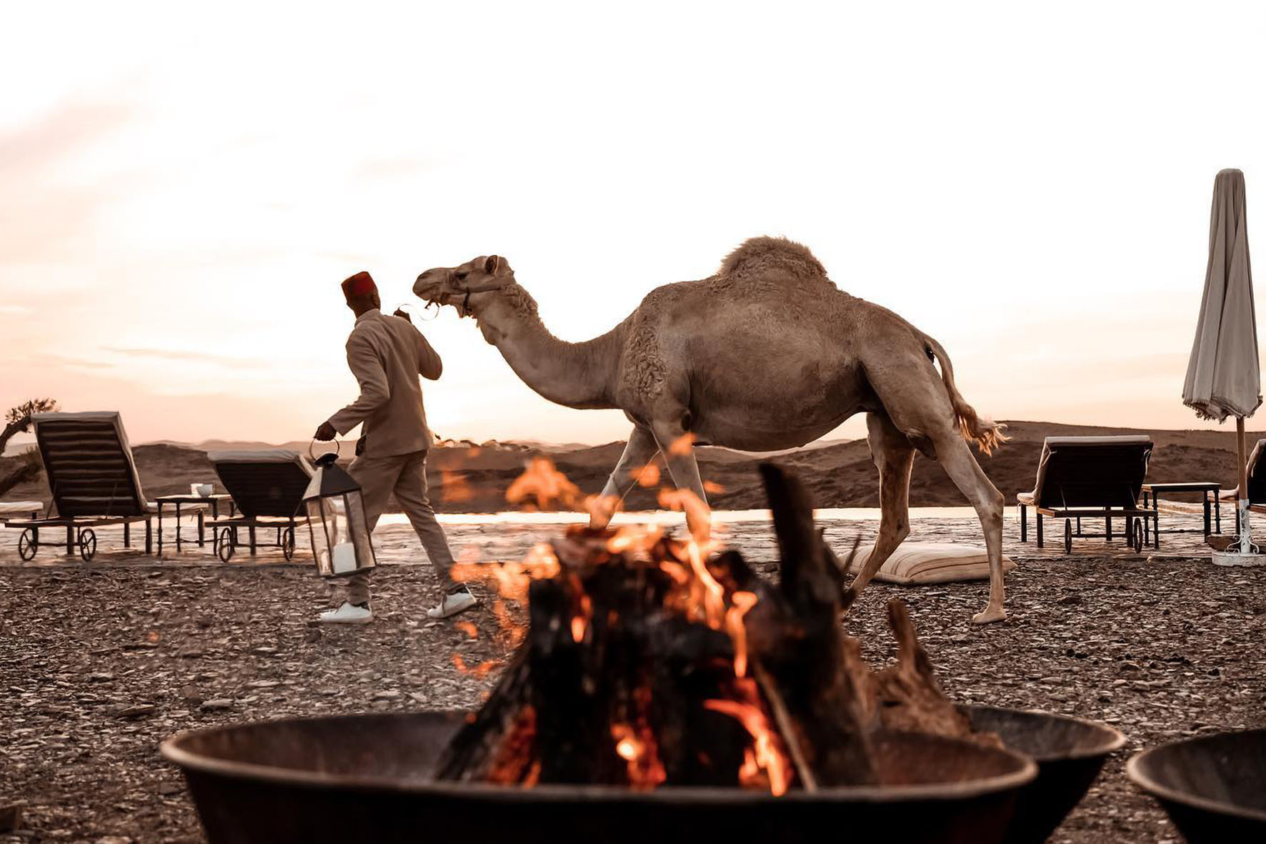 Back in our off-road vehicles, after a few hours we descended into the Agafay Desert, where The White Camel tented camp awaited us — with a most welcome shower, three swimming pools for relaxation, and a traditional dinner accompanied by local musicians and the inevitable swarm of cats and kittens: a constant presence in Marrakech and, as we discovered, even in the middle of the desert — as long as there are kind-hearted humans willing to offer food and affection.