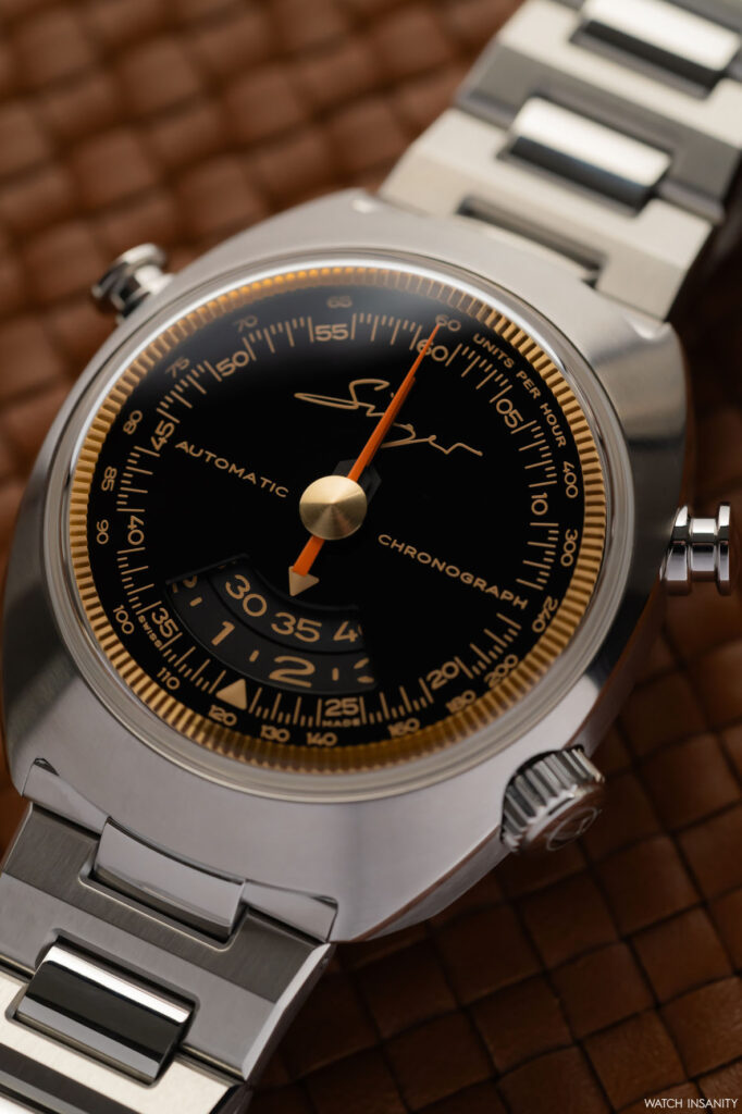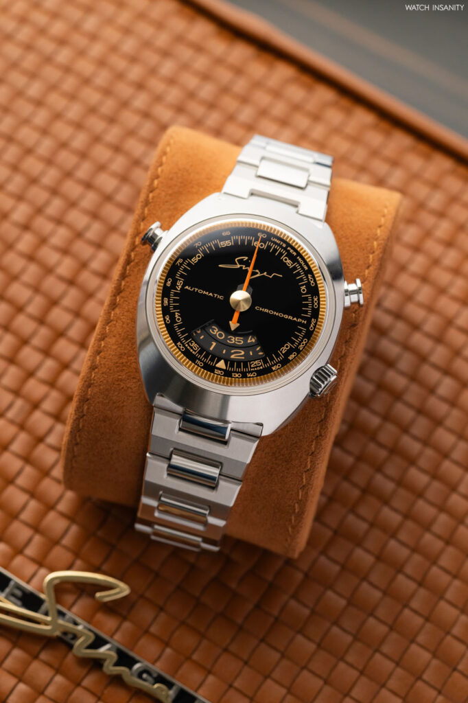 On both references, the case is in steel, in two parts, characterised by a sober and elegant design suitable for every wrist and based on ergonomic and functional considerations. Its retro look is reminiscent of classic watches; it is no coincidence that we wrote at the beginning about Marco Borraccino’s love for timepieces such as the Omega FlightMaster or the Heuer Autavia chronograph. The brushed surfaces and polished edges, a classic Singer finish, are meticulously crafted to have a jewel-like appearance.