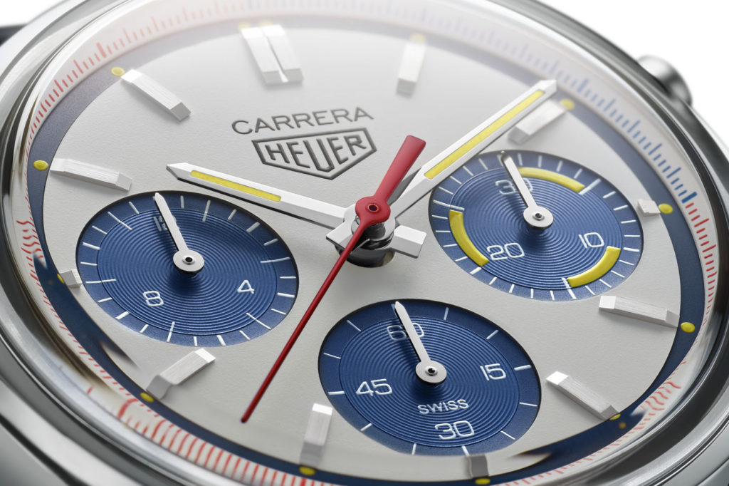 The creativity behind this limited-edition anniversary timepiece stems from the idea of fusing the designs and DNA of two iconic TAG Heuer watches. The new TAG Heuer Carrera 160 Years Montreal Limited Edition is directly inspired by the White Heuer Montreal, reference 110503W, which launched in 1972. Today, it is an exceedingly rare collector’s item. For the anniversary model, TAG Heuer borrowed the original, perfectly balanced red, yellow and blue colour palette of the White Heuer Montreal. The bright dial is emblematic of the 1970s, when watch design was transformed by the ability to use coloured luminescent materials; this invention opened-up a fantastic new era of creativity, especially for Heuer.