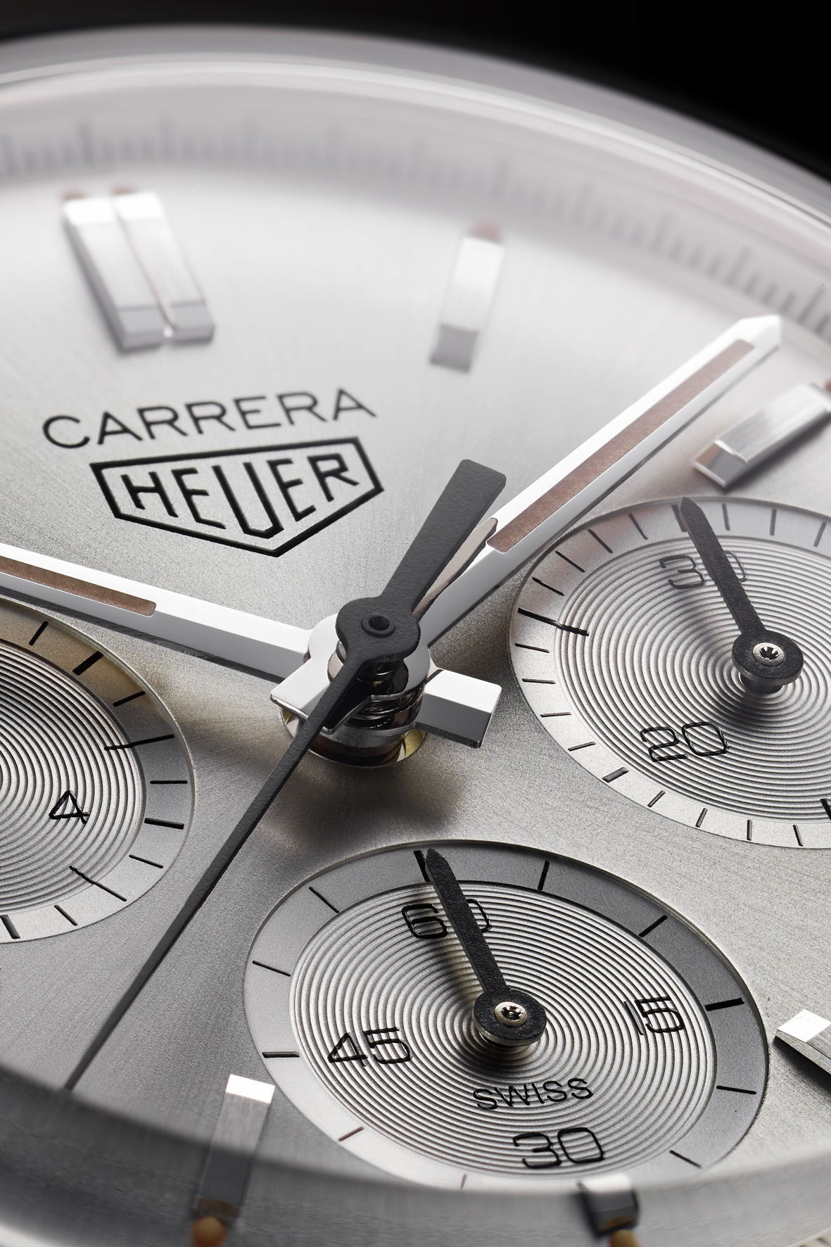The new Carrera 160 Years Silver Limited Edition features many of the same design highlights as its predecessor, such as the dial, the case and pushers. However, the shape is slightly different and the timepiece now measures 39 mm instead of the original 36 mm. The permanent second indicator is at 6 o’clock instead of at 9 o’clock due to the difference in the construction of the Valjoux 72 from 1963 and today’s Heuer 02 movement. The new in-house Caliber Heuer 02 comprises 168 components, including a column wheel and a vertical clutch and boasts an impressive power reserve of 80 hours. Another change from the original is the shape of the central hour and minute hands, which are now facetted and coated with beige SuperLuminova. The unmistakable Carrera name and HEUER shield are printed on the silver sunray brushed dial, which is protected by a domed sapphire crystal.