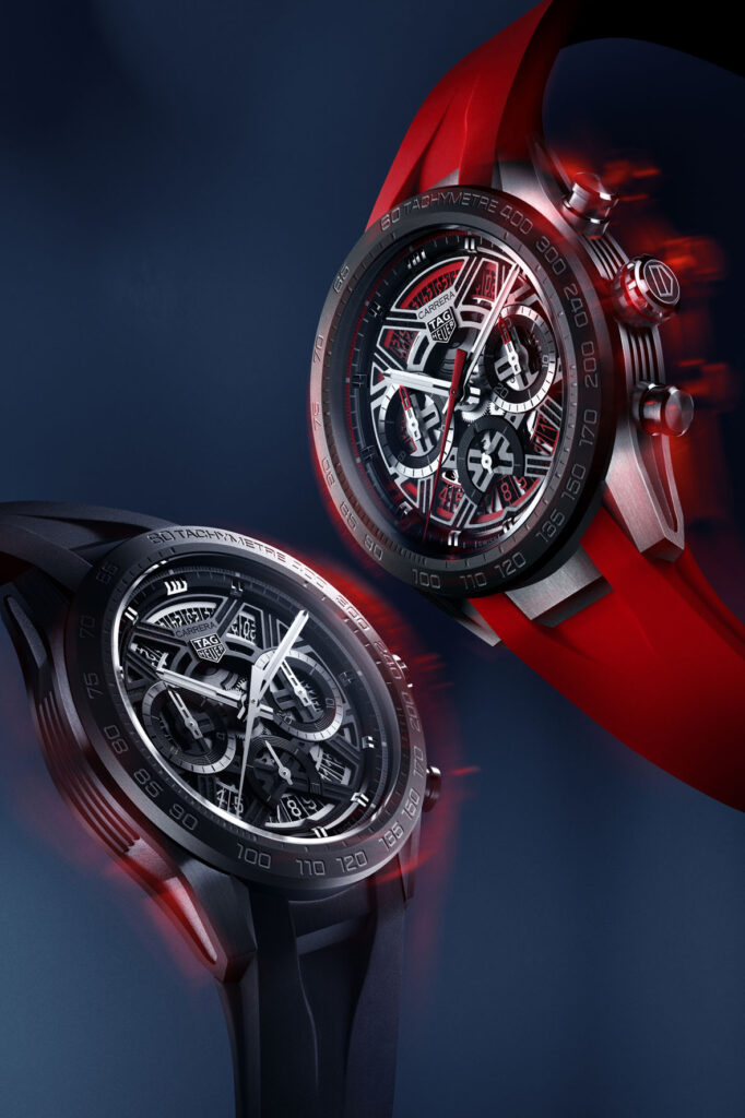 The launch is also comprised of the TAG Heuer Carrera Chronograph Tourbillon Extreme Sport, two watches showcasing TAG Heuer’s horological savoir-faire. The first, an all-black tourbillon, and the second, a luxurious gold version, are both 44mm in diameter, effortlessly blending technicity with preciousness.
