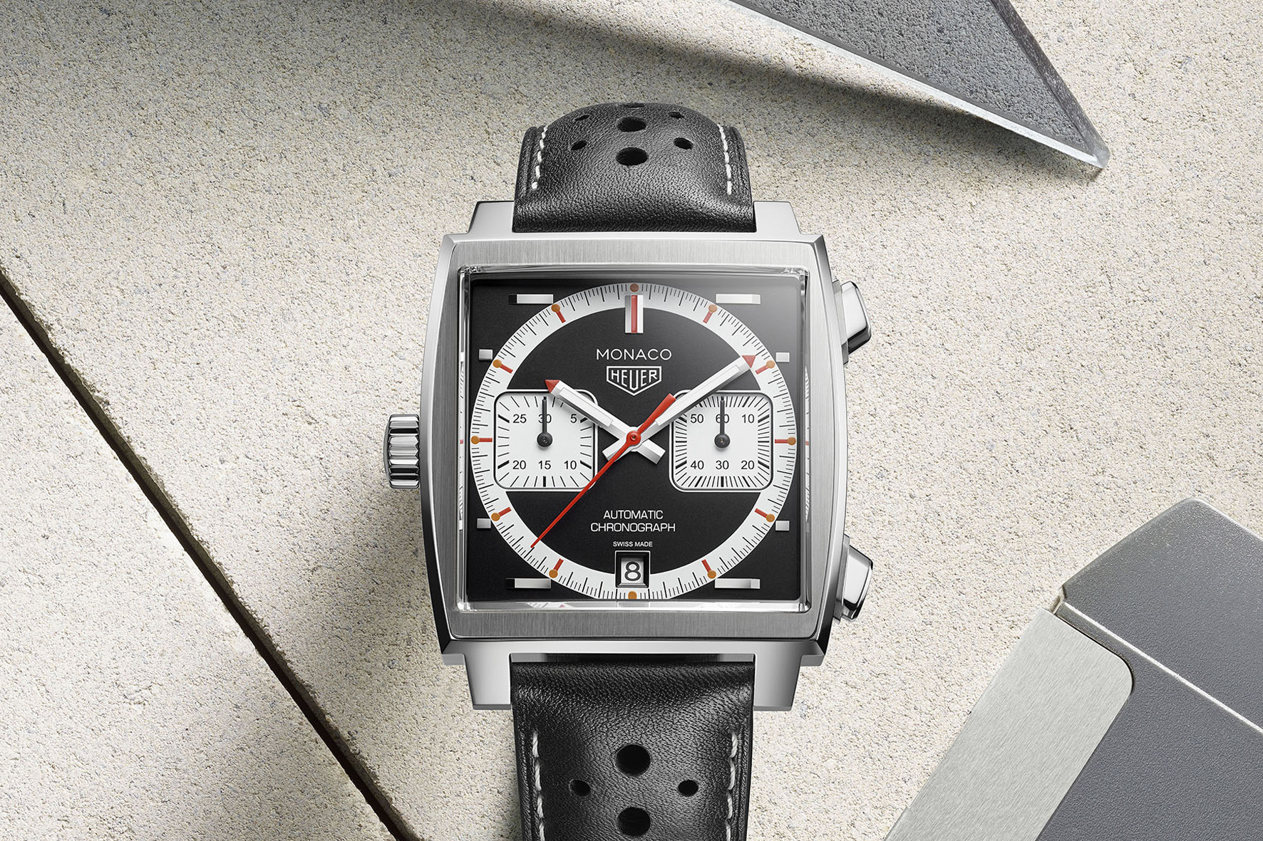 As with the original, the pushers are on the right of the case while the crown is on the left – an unconventional feature that has distinguished the Monaco over the past 50 years.