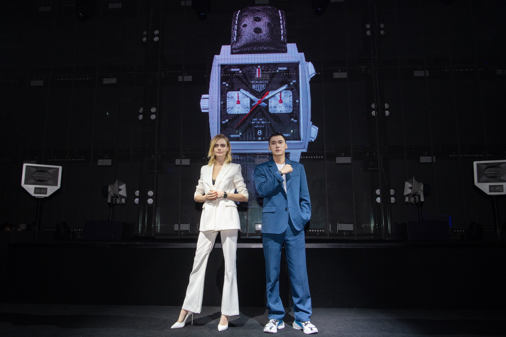 Upon entering, guests were immediately immersed in the Monaco universe and discovered “timeboxes” – custom time capsules that transported them to the four decades represented by the Monaco anniversary pieces – in the reception area. Following an opening video introducing the Monaco collection and a spectacular show of light and shadow, brand ambassadors Cara Delevingne and Li Yifeng unveiled the fifth limited-edition Monaco anniversary timepiece, which pays tribute to the second decade of the twenty-first century.